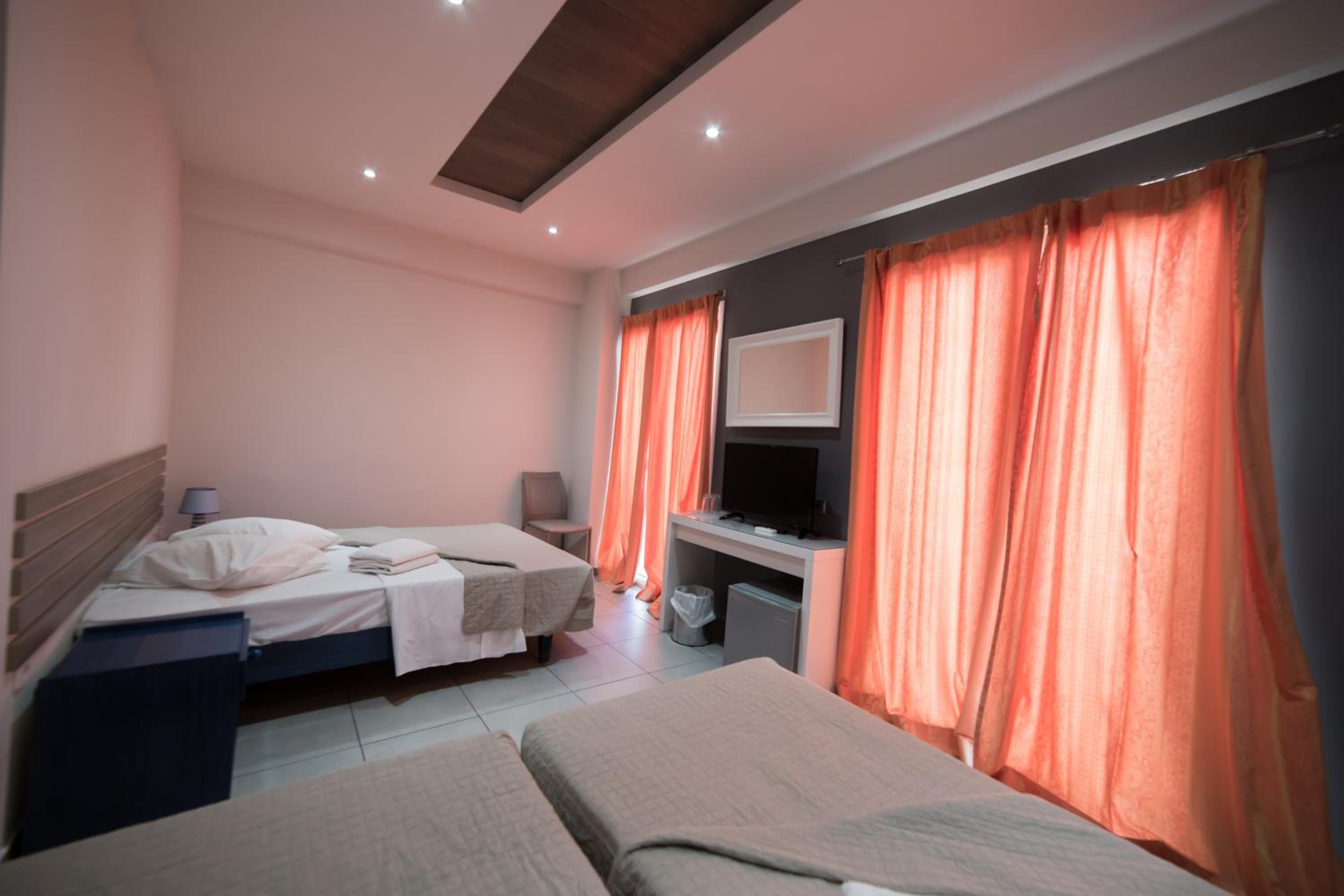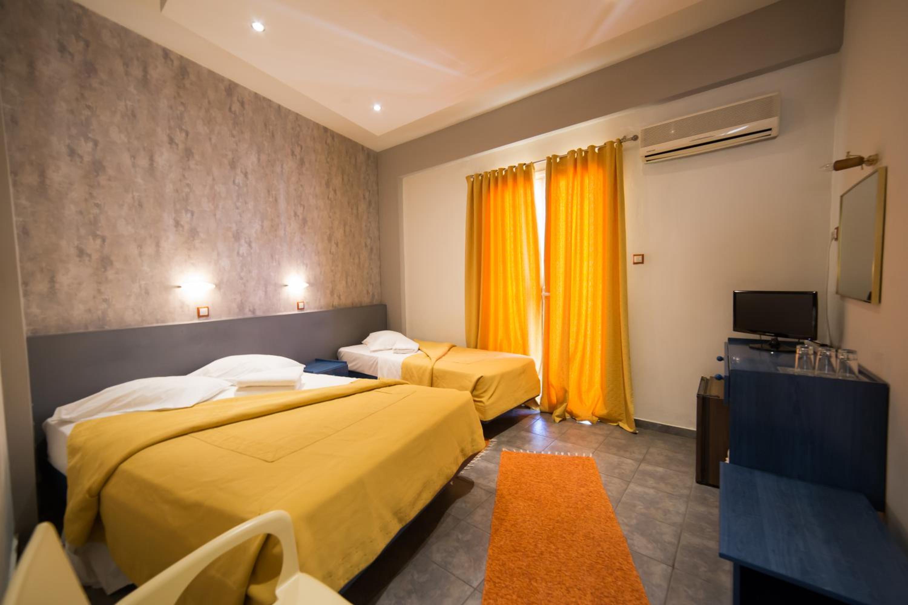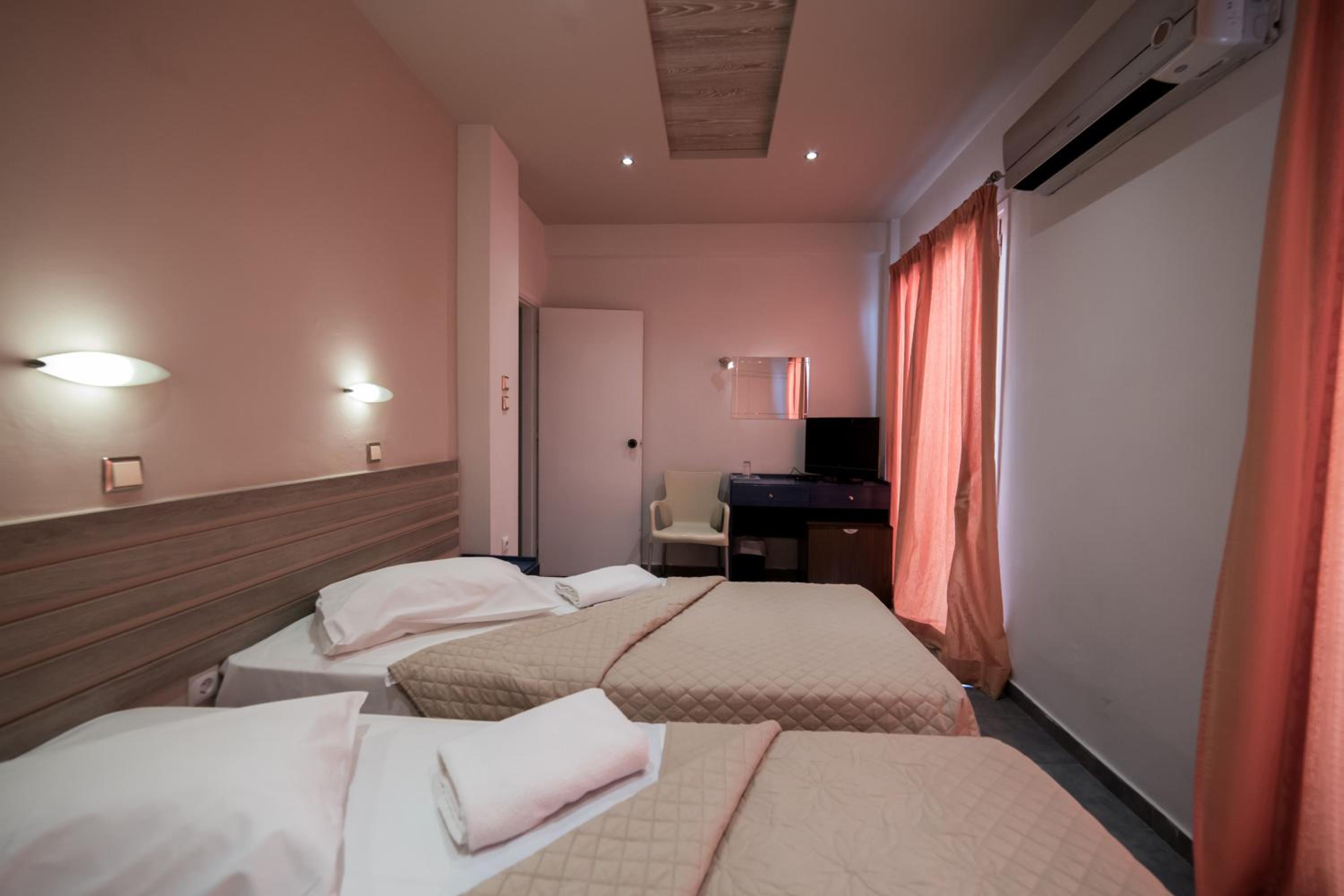 The well-equipped guest rooms with balconies, private bathrooms, air conditioning, TV, fridge, and ironing facilities ensure a comfortable stay for guests at Nafsika Hotel.