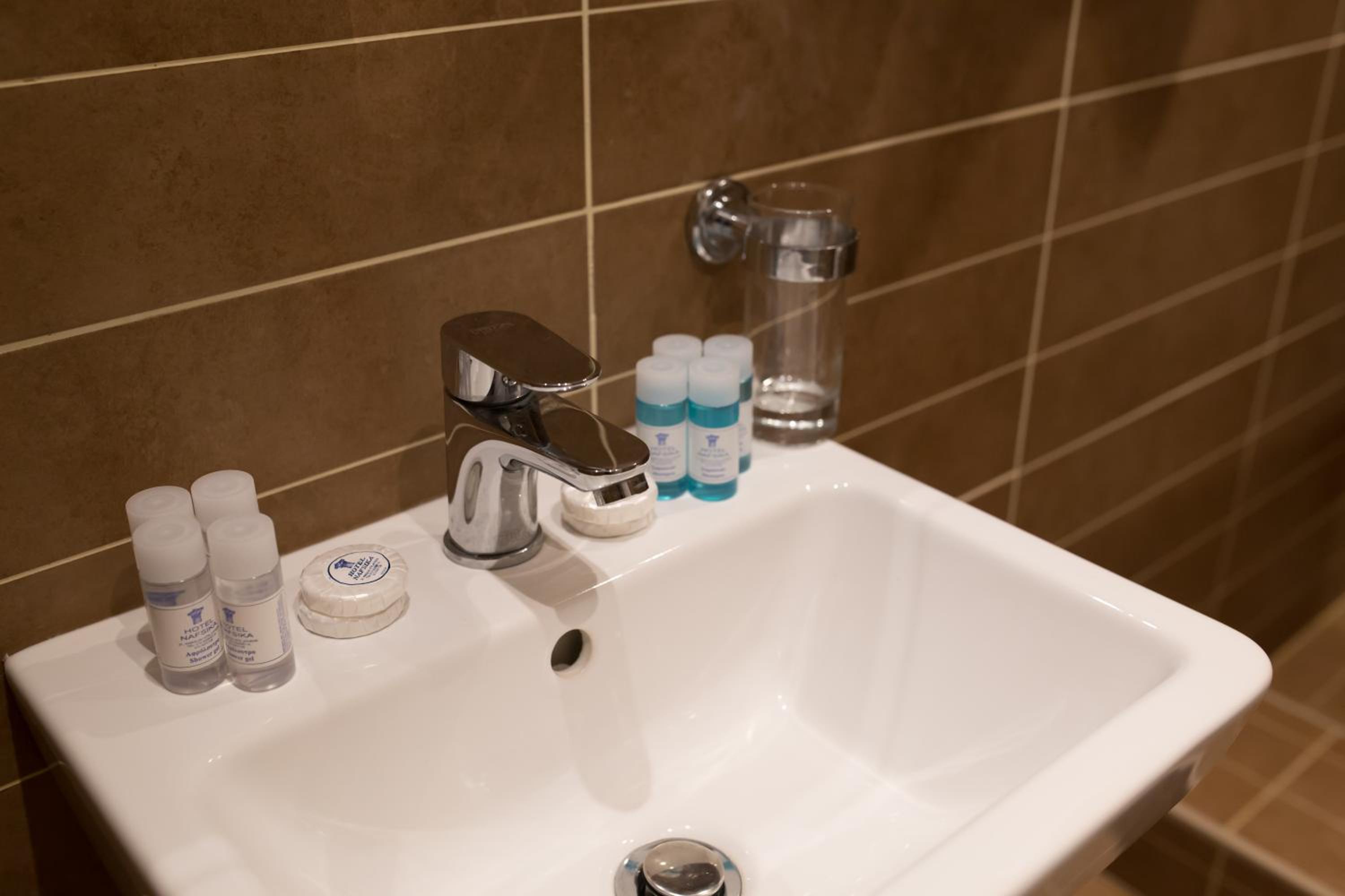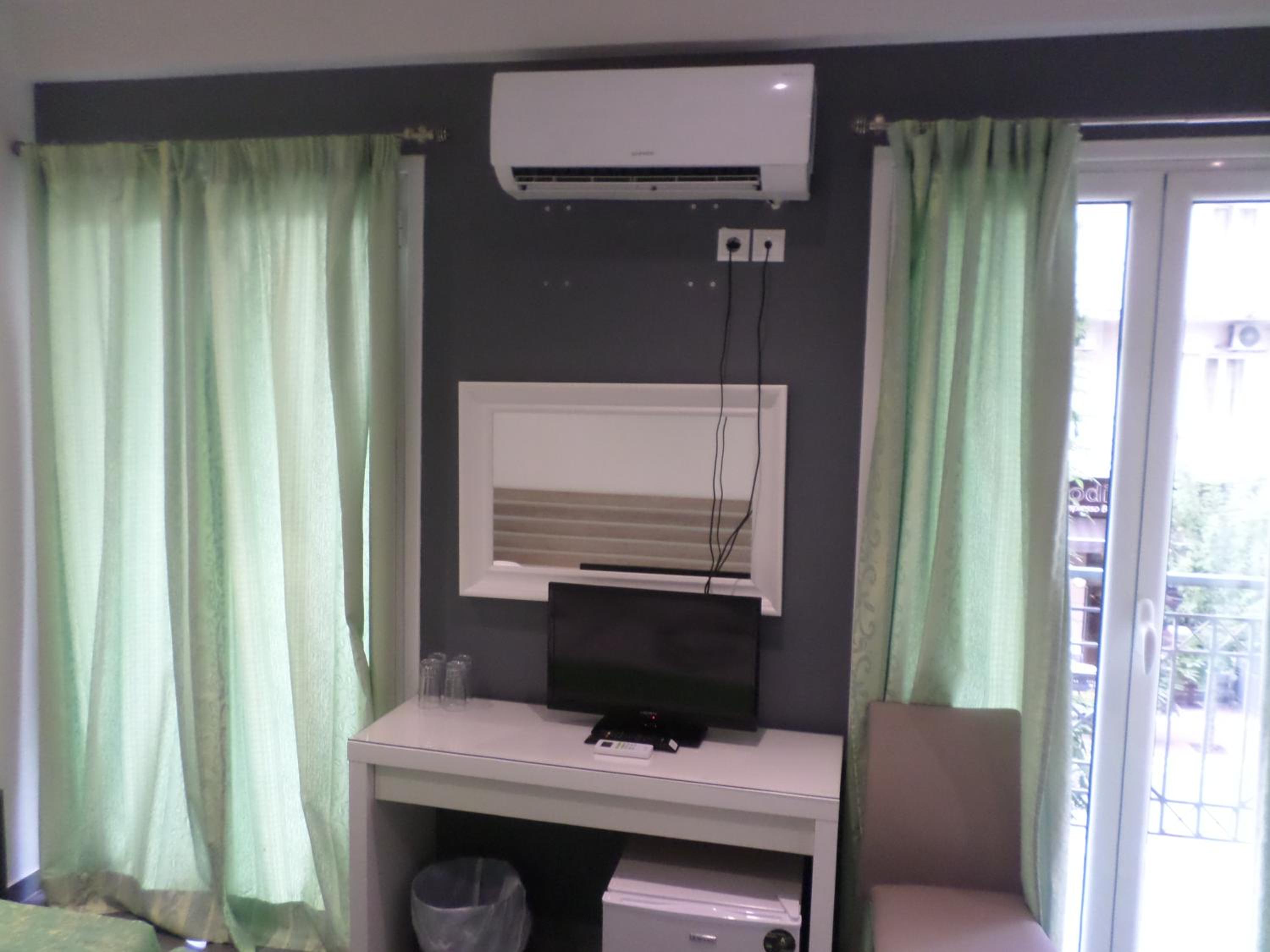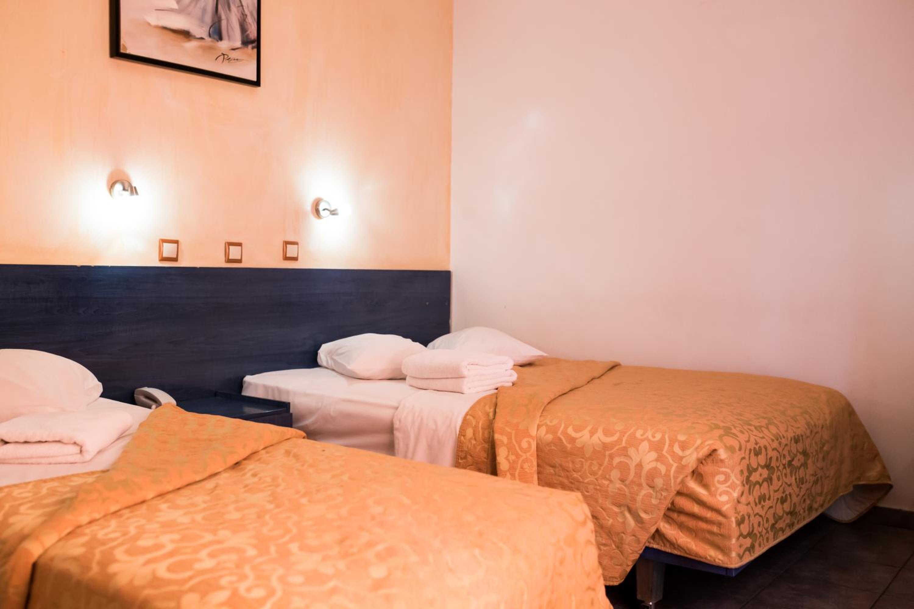 The well-equipped guest rooms with balconies, private bathrooms, air conditioning, TV, fridge, and ironing facilities ensure a comfortable stay for guests at Nafsika Hotel.