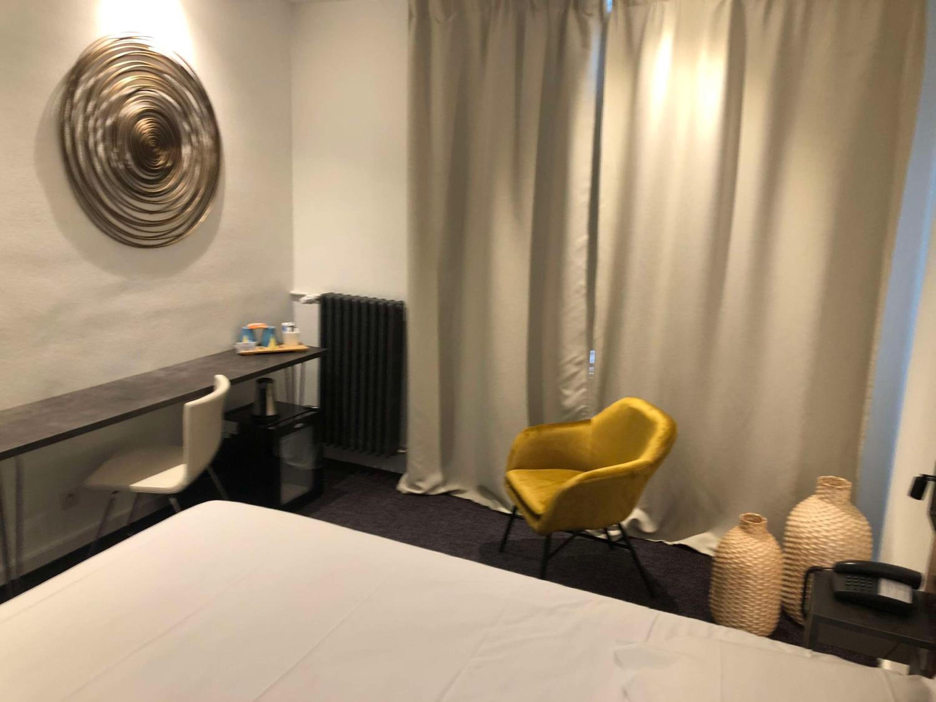L'hôtel demanderait un bon rafraichissement. La moquette de la chambre est très tachée, ce qui rend suspicieux. Il y a un problème d'éclairage au 5e étage : il ne s'allume que lorsque l'on est au milieu du couloir et ne reste allumé que très peu de temps.... Et comme il faut s'y reprendre à 4 reprises pour faire fonctionner son badge dans la serrure, on se retrouve dans le noir.