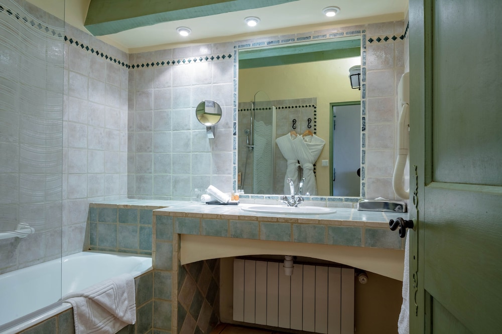 The hotel is located inside an old restored abbey. The location is stunning but not readily accessible through the autoroute. In other words, you have to know it is there and once you are there, you are there. Fortunately, the hotel has a restaurant and a nice breakfast buffet. The rooms are furnished in a more classic style with a complete bathroom. Don’t expect anything modern here. This is a higher standard line of hotels ideal for special celebrations.