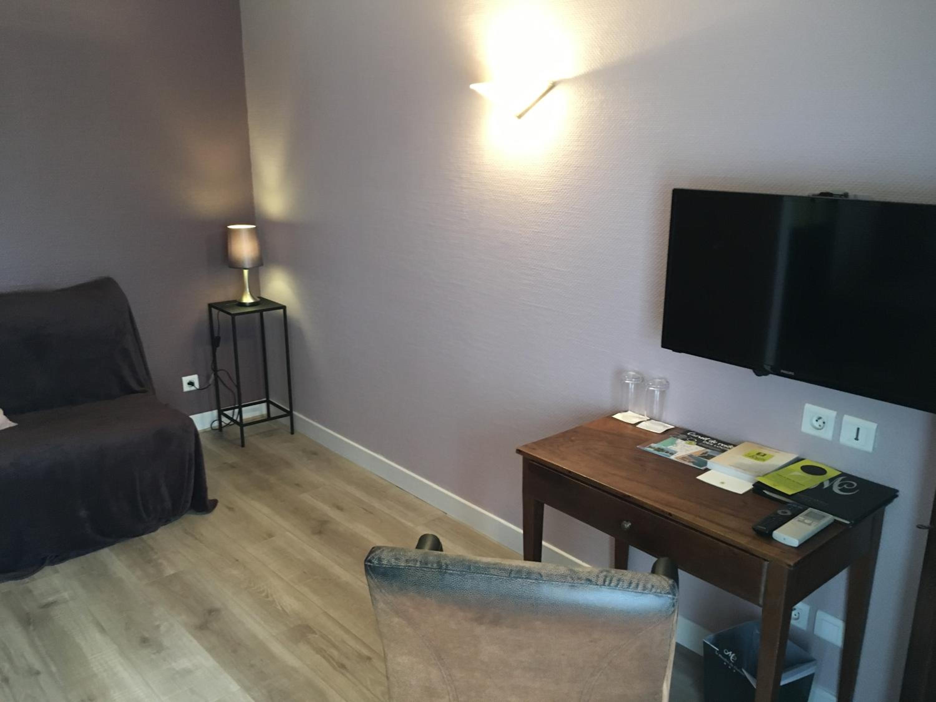 Sdb 2 ampoules sur 3 au plafond HS,vmc Hs sans fenêtre.lits Înd. 80x190, pas de moustiquaire du au plan d’eau sur la propriété . Petit déjeuner très moyen et coûteux (19 euros) pas de double vitrage. Bruit de passage de voitures vu que la propriété est en bord d’une départementale à fort passage. Le 3 étoiles est à revoir et pour cause les plaques de classifications étants validés pour les plus récentes jusqu’à 2023