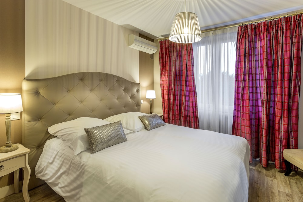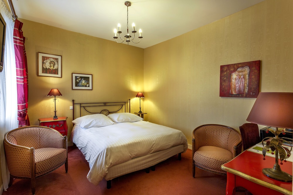 Belle chambre en réz de jardin avec terrasse. Chambre spacieuse et propre avec toutes les commodités. Nous n’étIons que de passage donc nous n’avons pas profité de là piscine. Parking sur place. Nous avons dîner au restaurant de l’hotel. Très bons plats. Une très belle adresse.