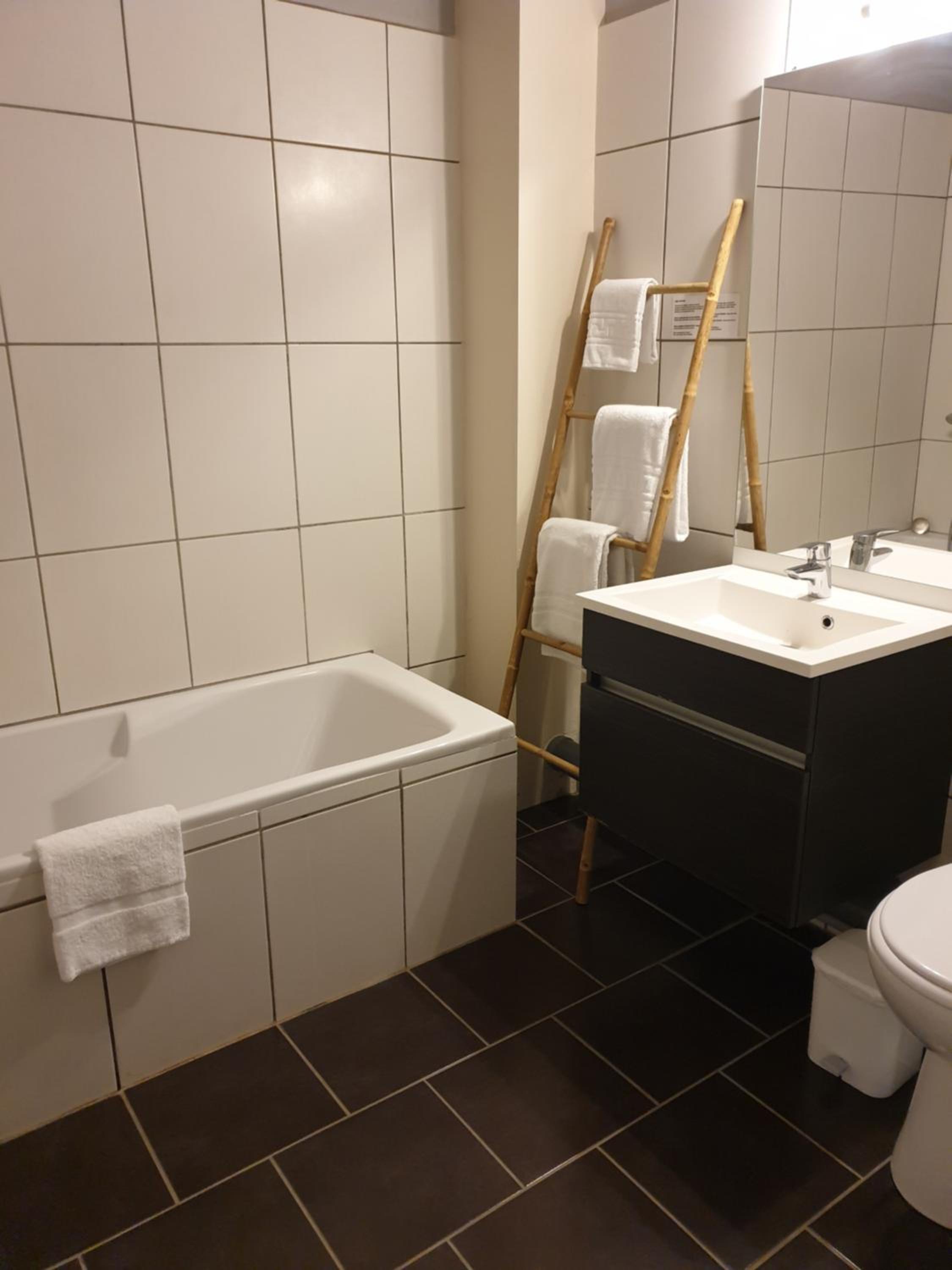 Salle de bain avec baignoire pas très pratique pour la douche