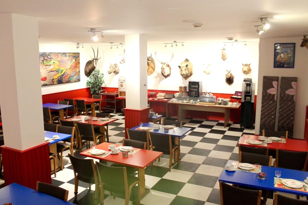 Very nice hotel full of hunting trophies better than the F1 chain but still basic - no coffee or tea in the bedroom one blanket one pillow lots of noise from the heating I think! Shower water went on the floor so had to mop up with a towel but wasn't expensive and only for one night! breakfast wasn't an exceptional one - continental but ham was the only meat and not a great choice so for 20€ for two people rather expensive for what was on offer! However bed was comfortable so slept reasonably well and I wanted two singles and this was the only hotel on that night that had them so all in all I would use them again but would ask reception for more pillows blankets and towels!