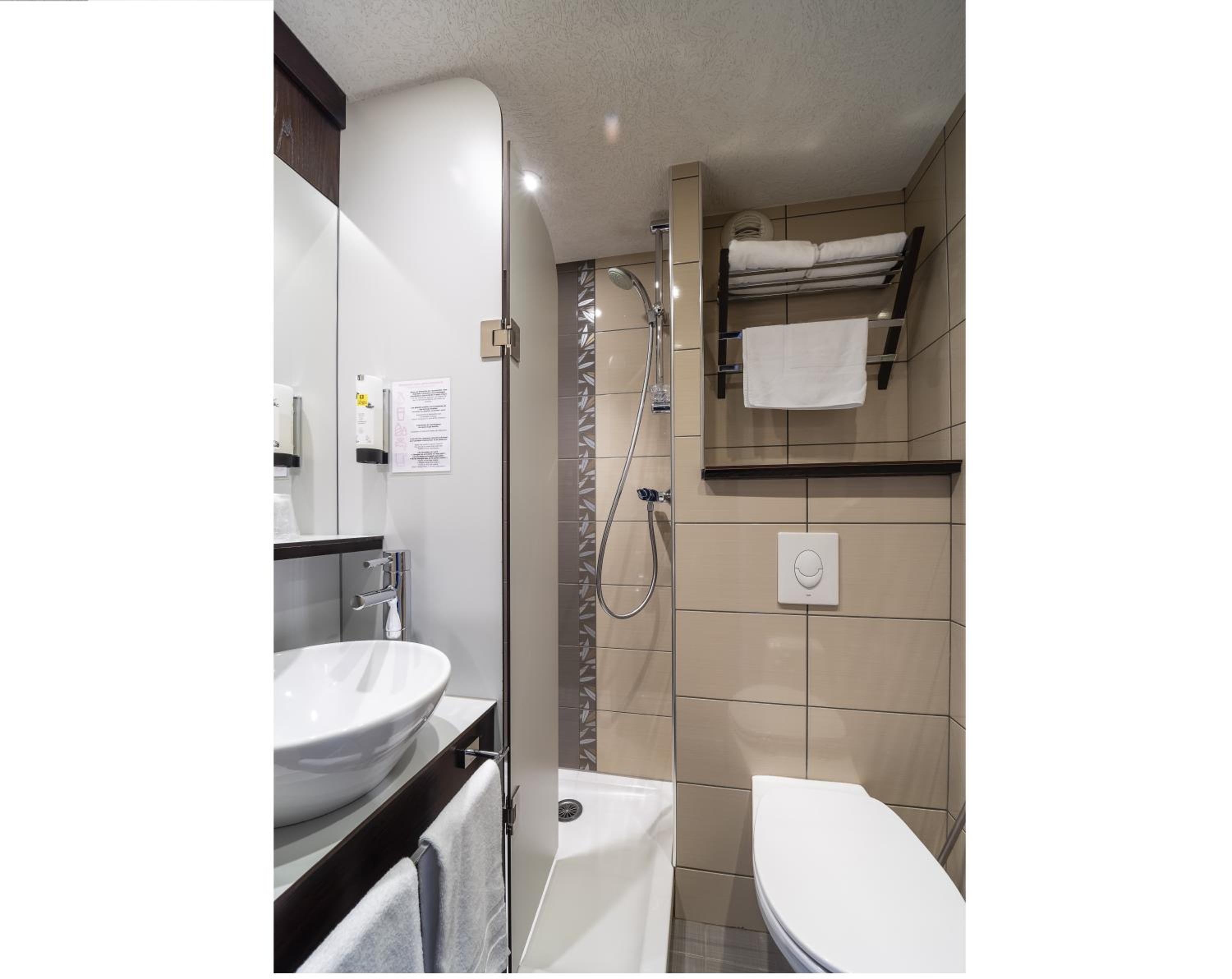 Petite chambre, petit lit, petite télé,et très petite salle de bain, très peu pratique...