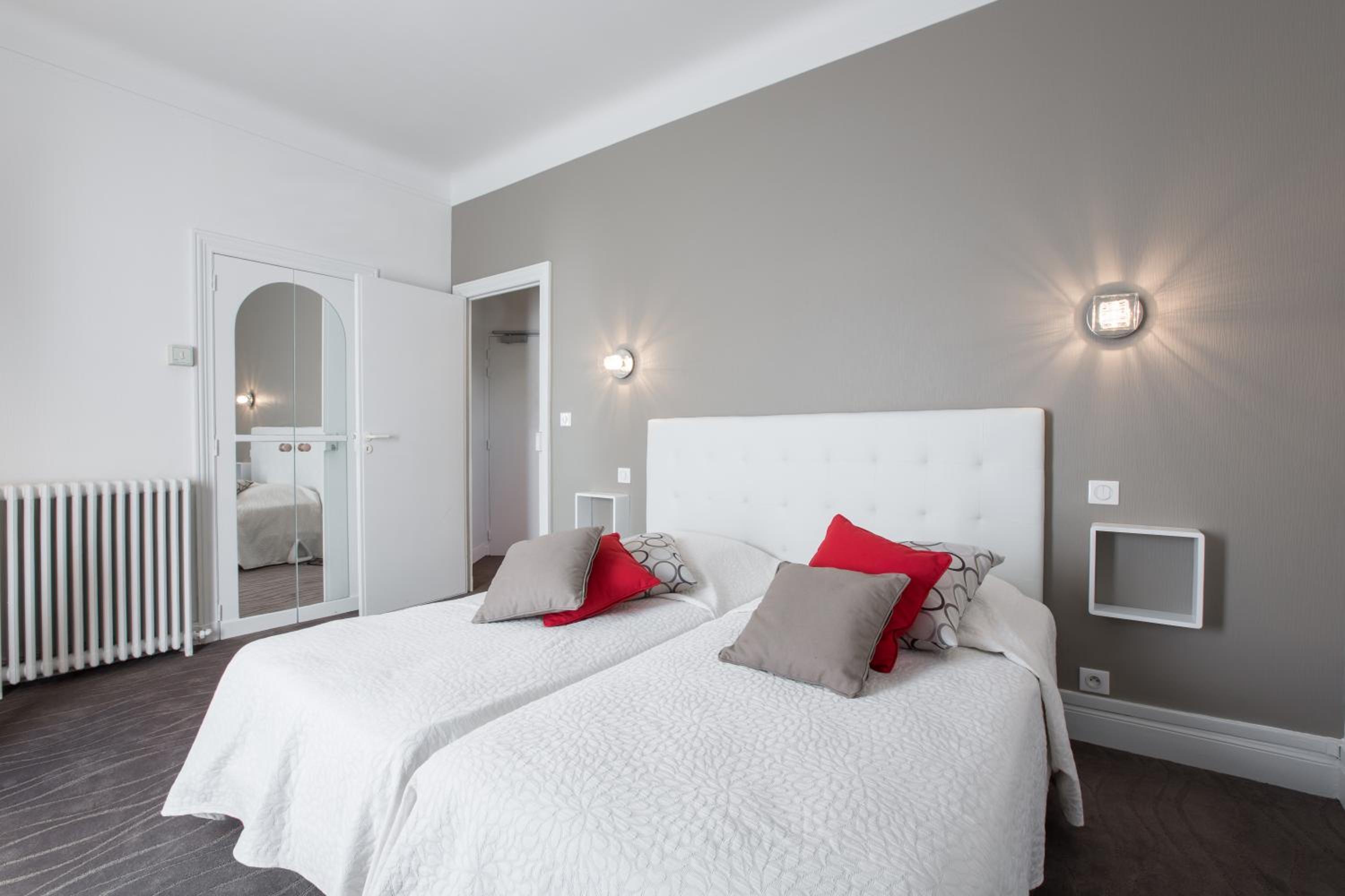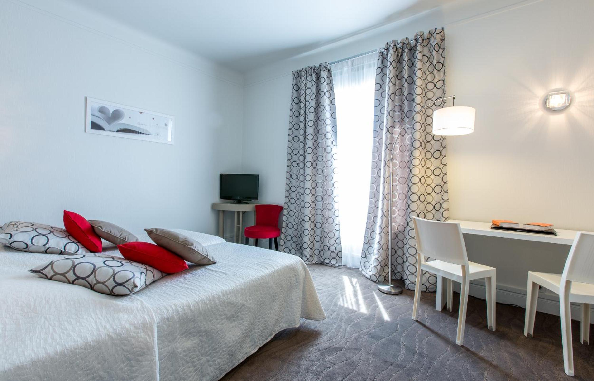 Each spacious room at Hotel Radio is tastefully decorated with elegant furniture and offers breathtaking views of Chamalières and the surrounding hills, providing a serene and picturesque setting for guests to relax.