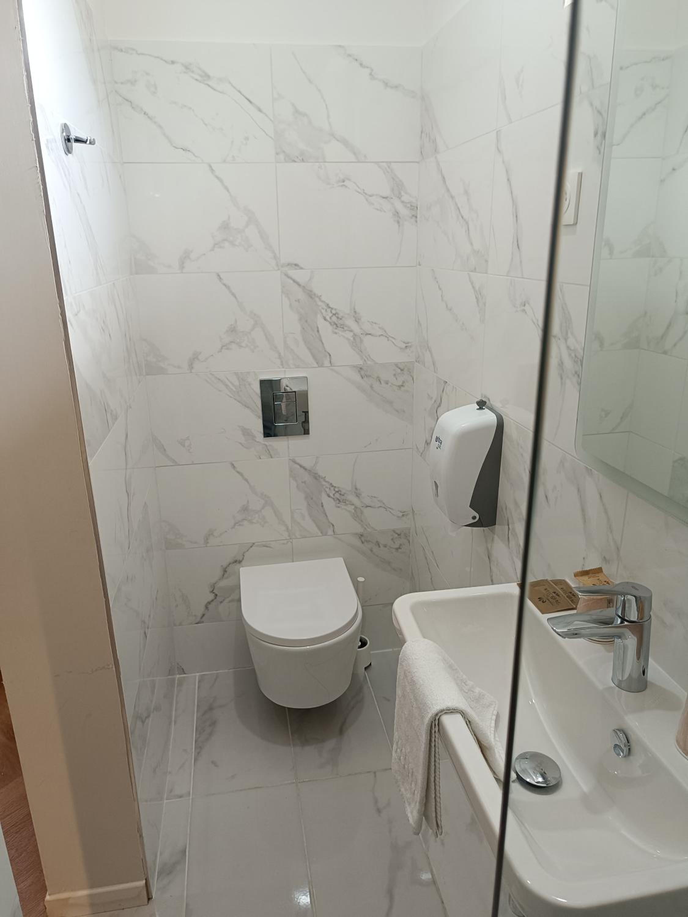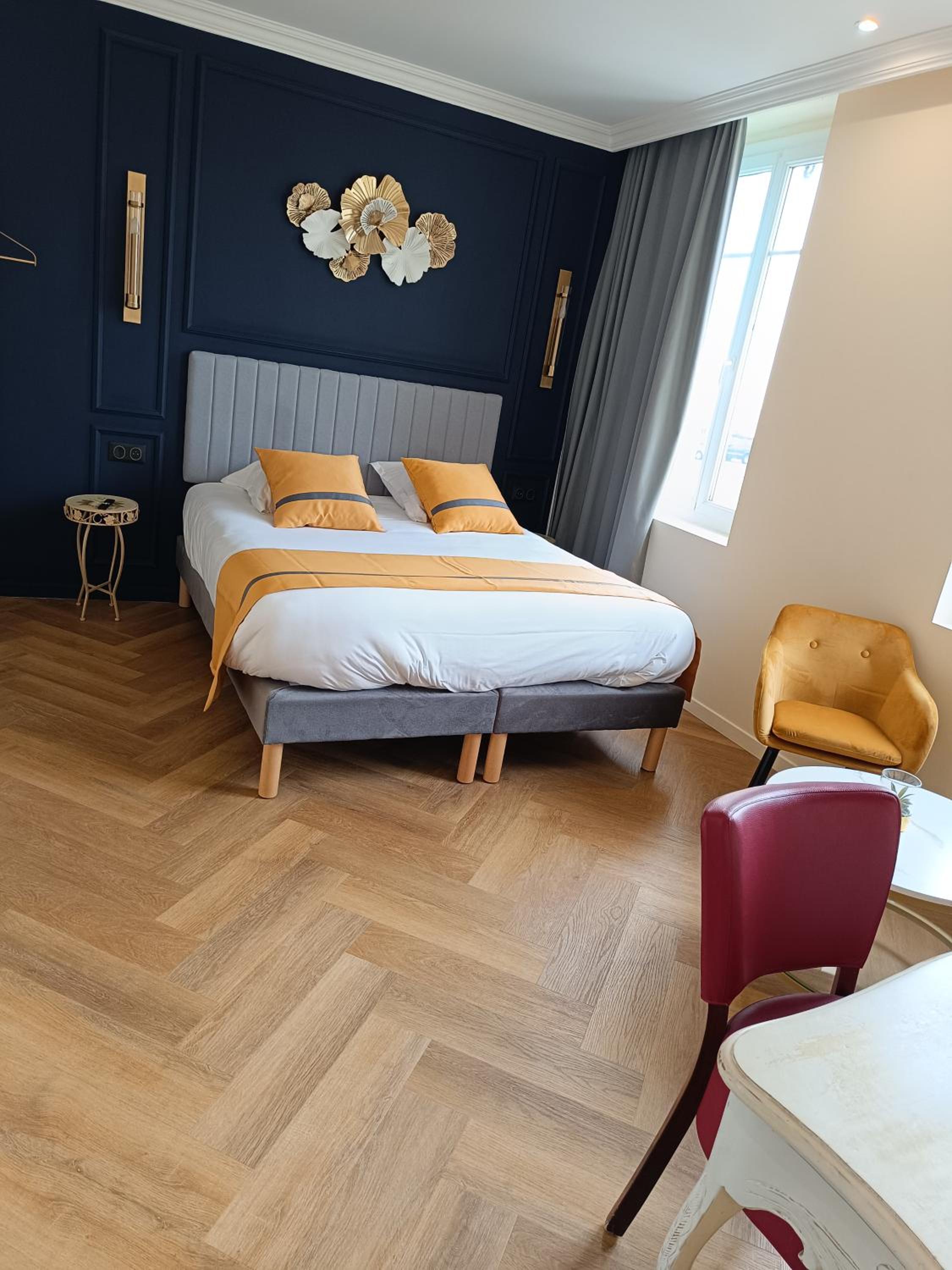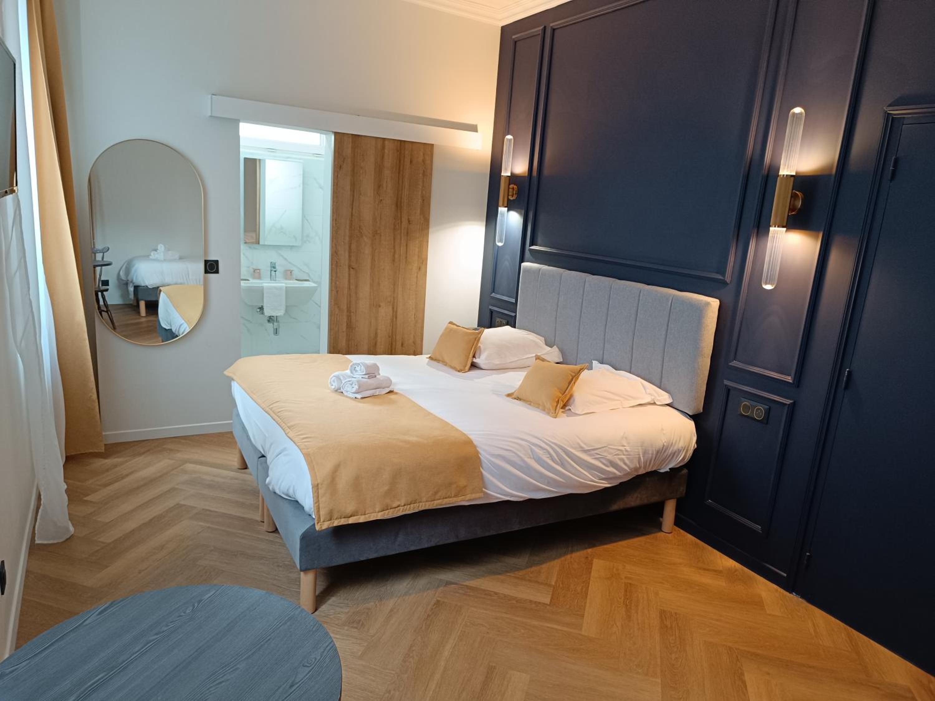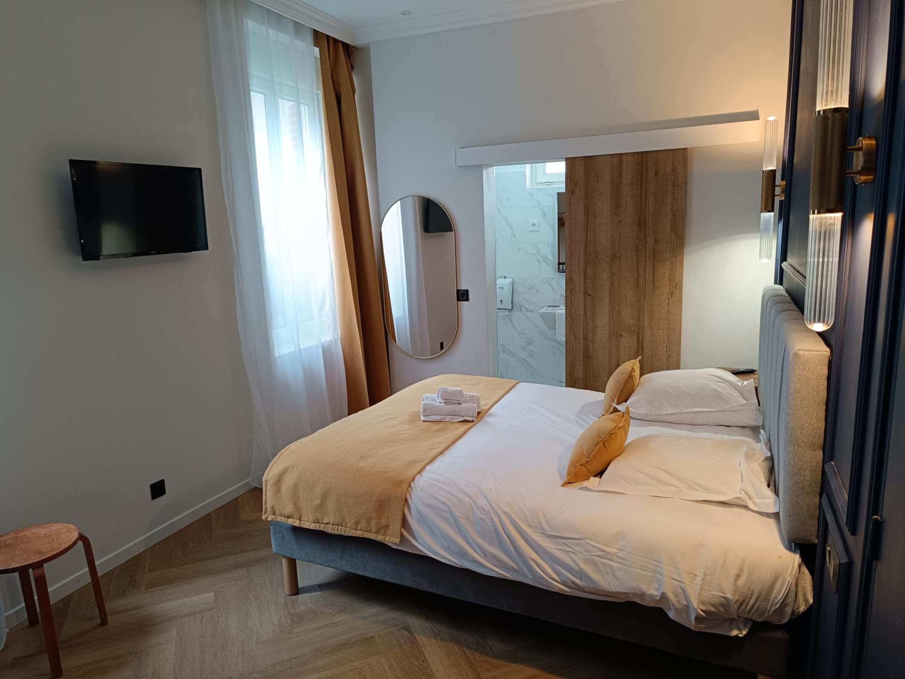 La chambre était spacieuse et on voyait la mer depuis les fenêtres. La literie et les draps étaient confortables, les serviettes et la salle d'eau, très propres. Petit-déjeuner très correct. L'accueil a été super, malgré mon arrivée tardive ! Merci beaucoup !