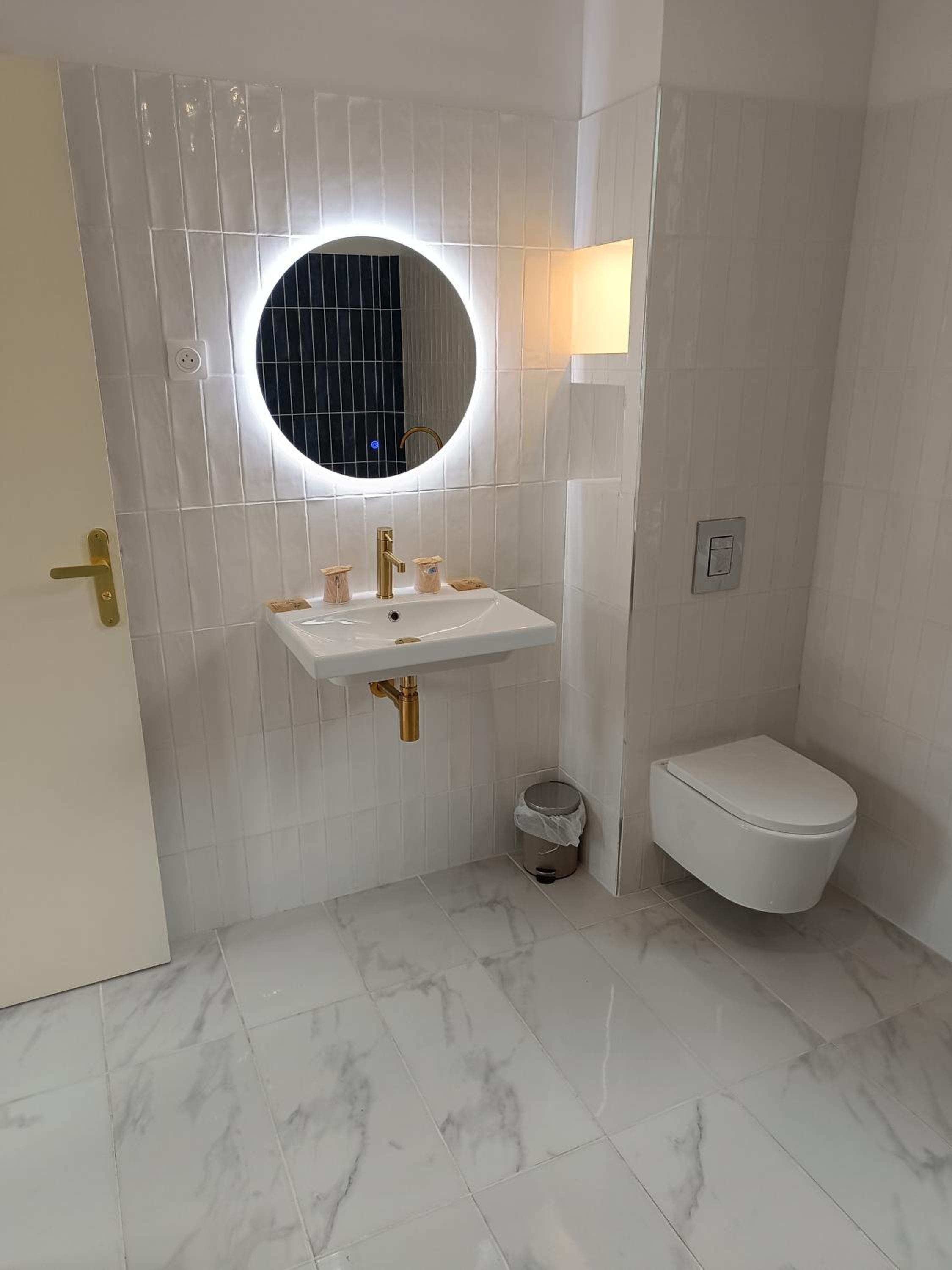 Le petit portant jaune (avec les cintres) de la chambre a vécu et la déco est trop spartiate... le tuyau de douche mérite d'être changé, et un coup de peinture sur la porte serait bienvenu (sur la face intérieure), car il y a des traces grises... Il y avait une forte odeur de canalisations dans la salle de bain, mais elle a disparu quand j'ai fait couler de l'eau.