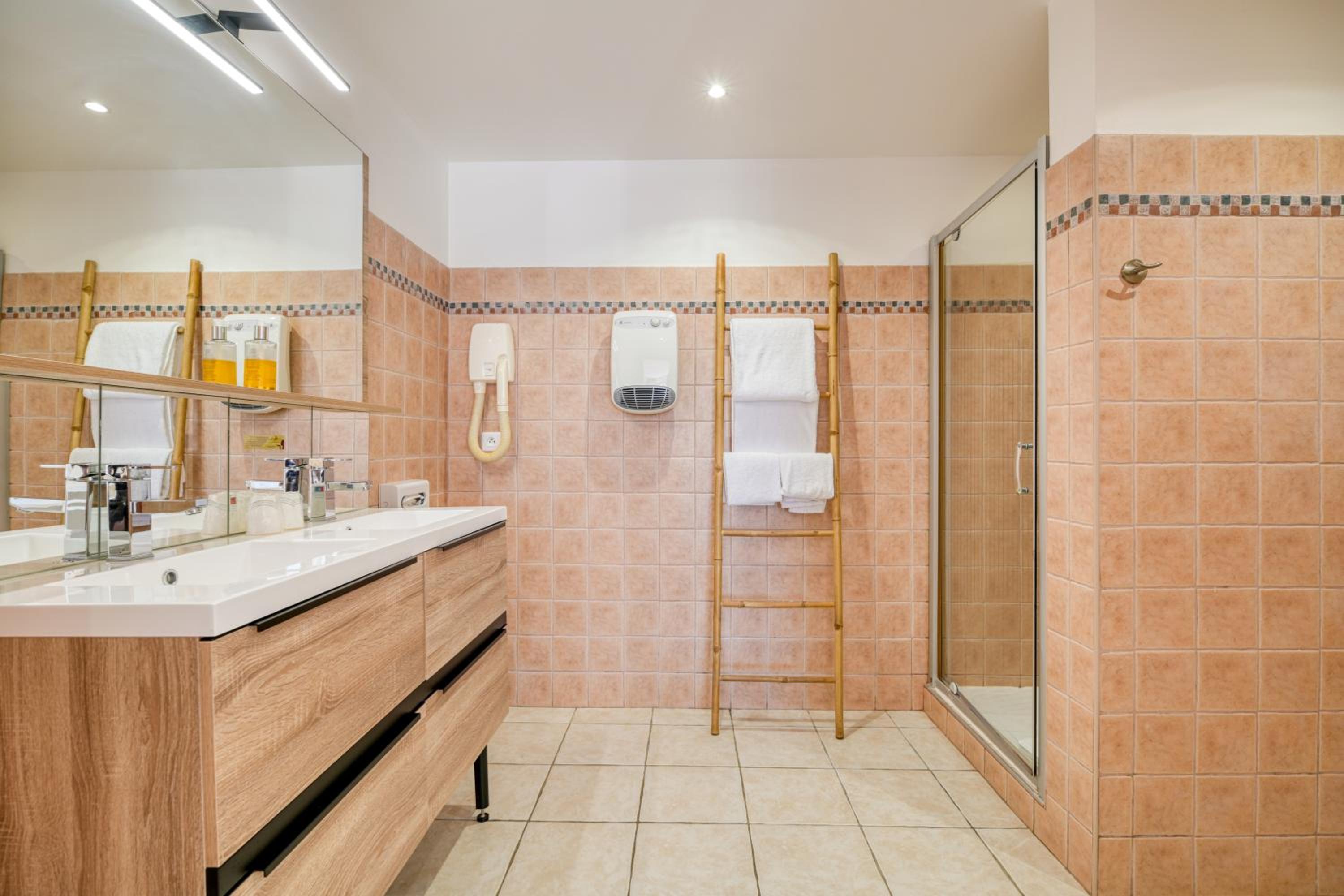 Unwind on the outdoor terrace with a picturesque view of the heated swimming pool. For added convenience, guests can enjoy free private parking when arriving by car.
