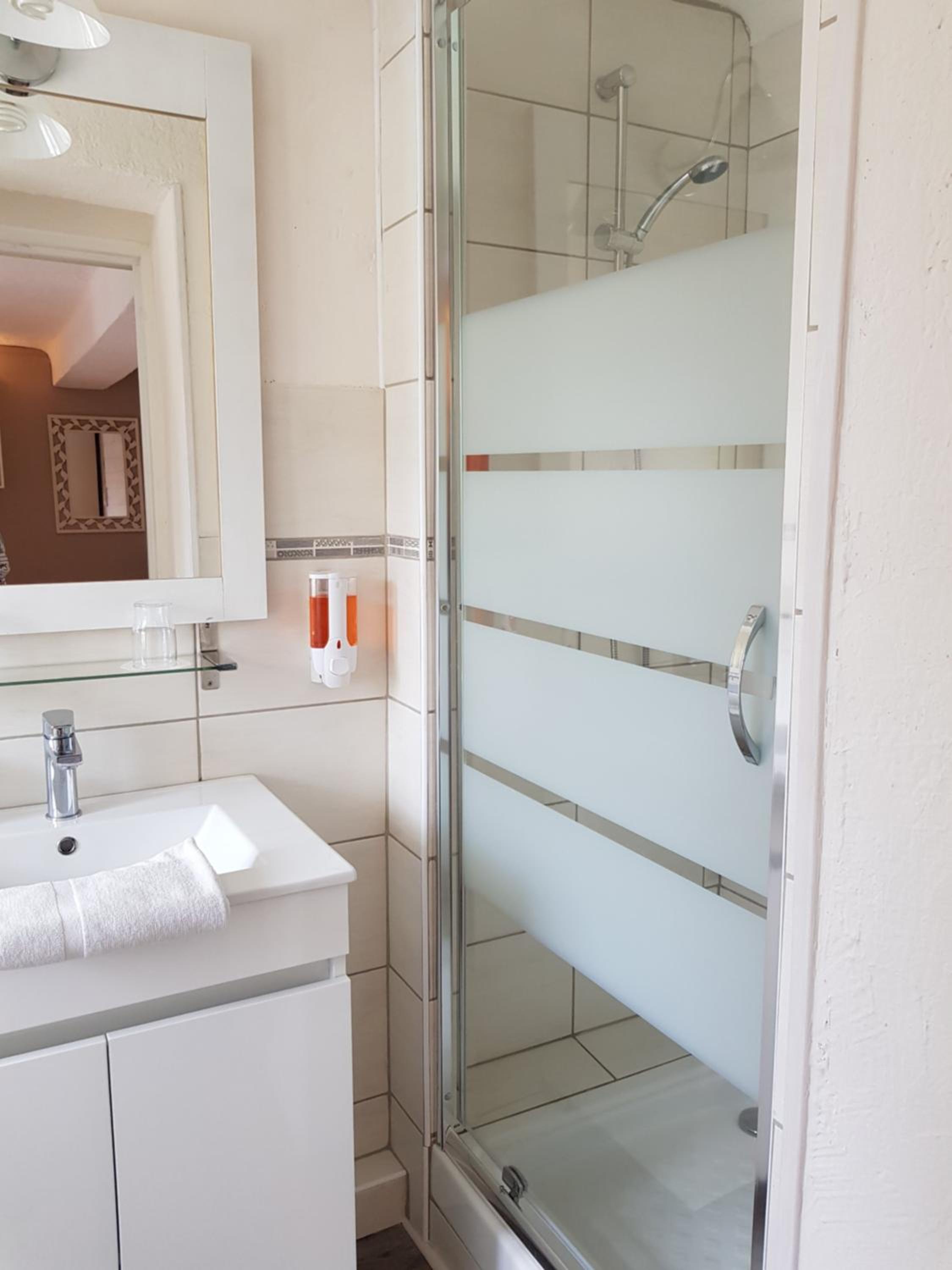 La Salle de douche trop petite qui donne directement dans la chambre.