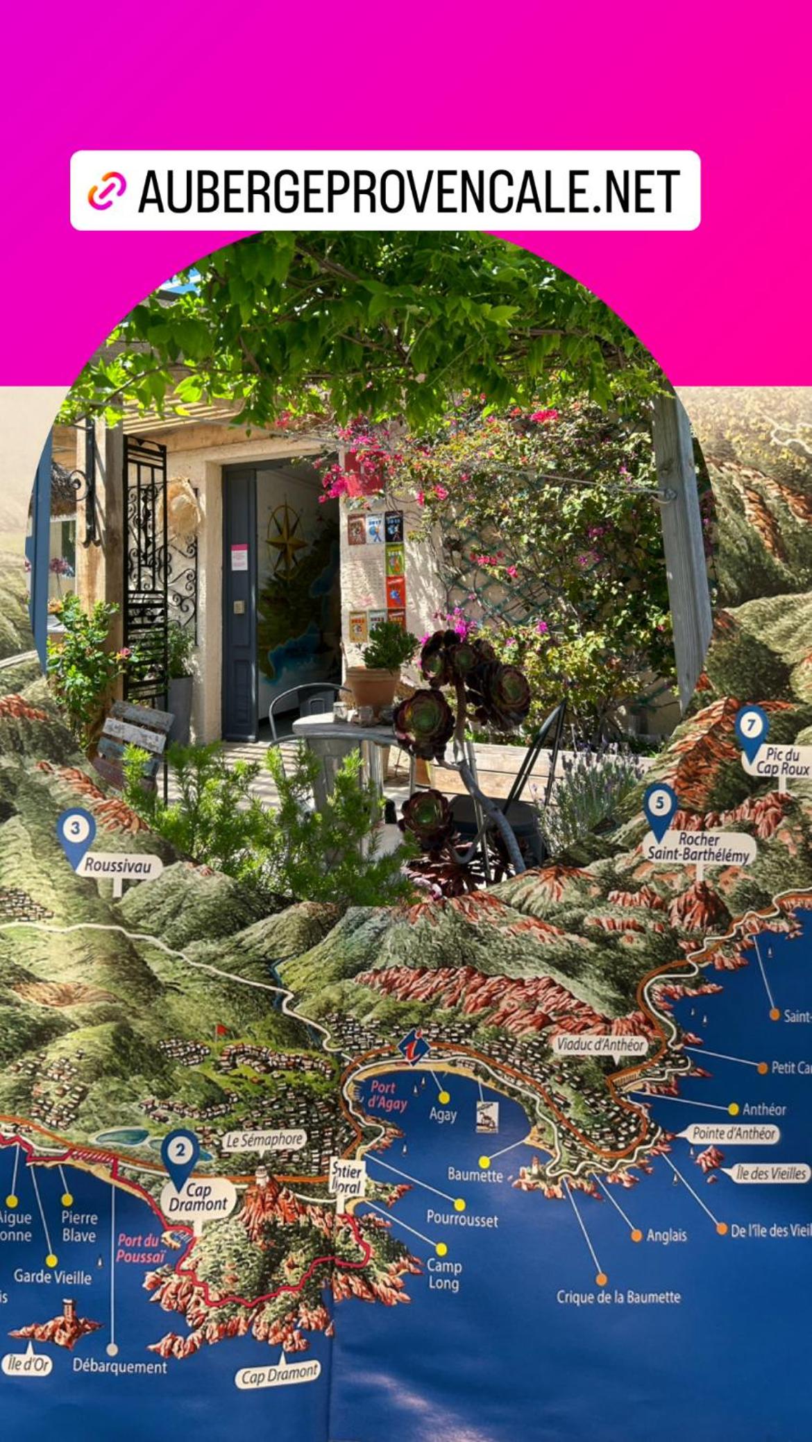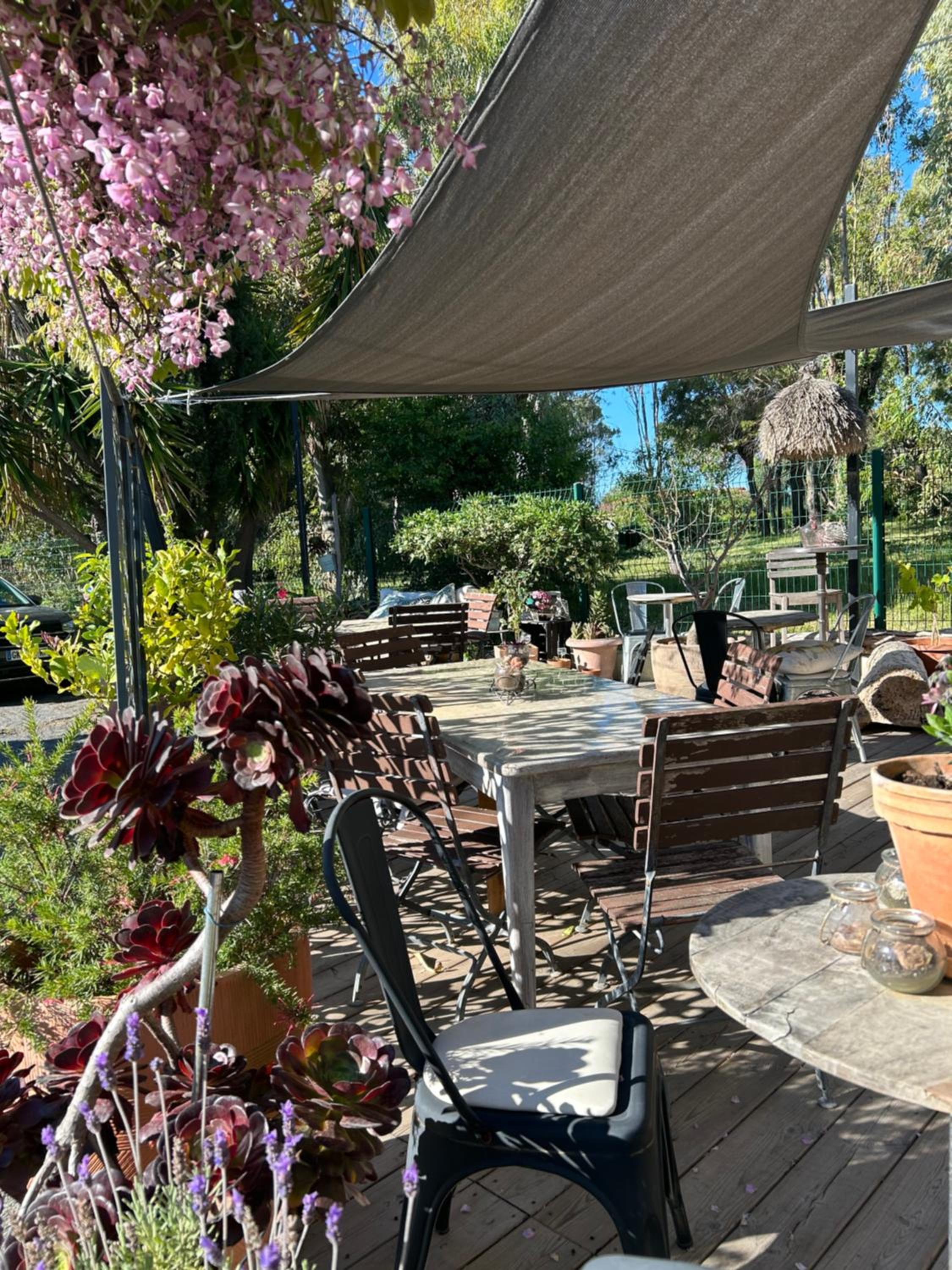 magnifique petite auberge sur un petit chemin tranquile, en retrait d'une petite localité de bord de mer dans la région rocheuse de l'Esterel; extrêmement calme, avec deux très agréables terrasses