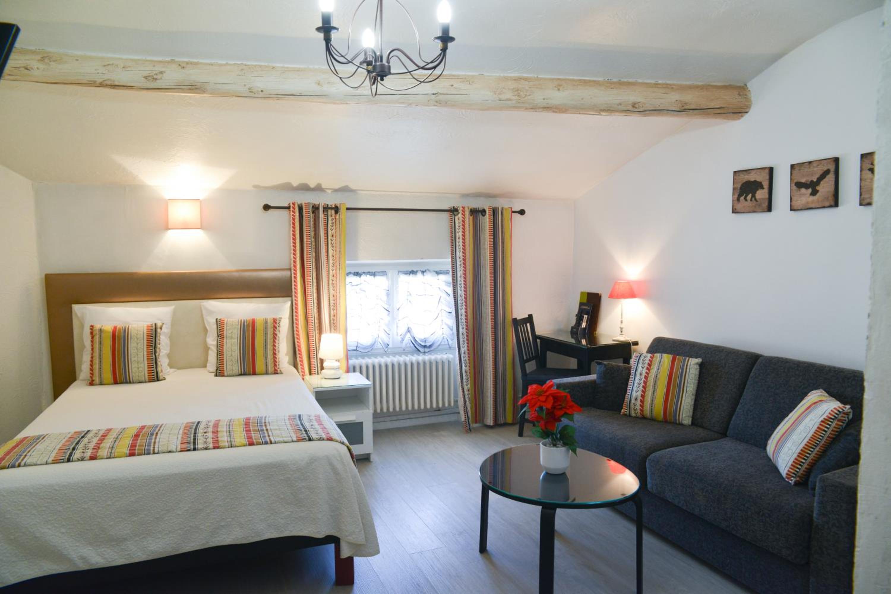 Chambre spacieuse et décorée avec goût. L'hôtel est très bien situé pas besoin d'aller très loin pour se restaurer.