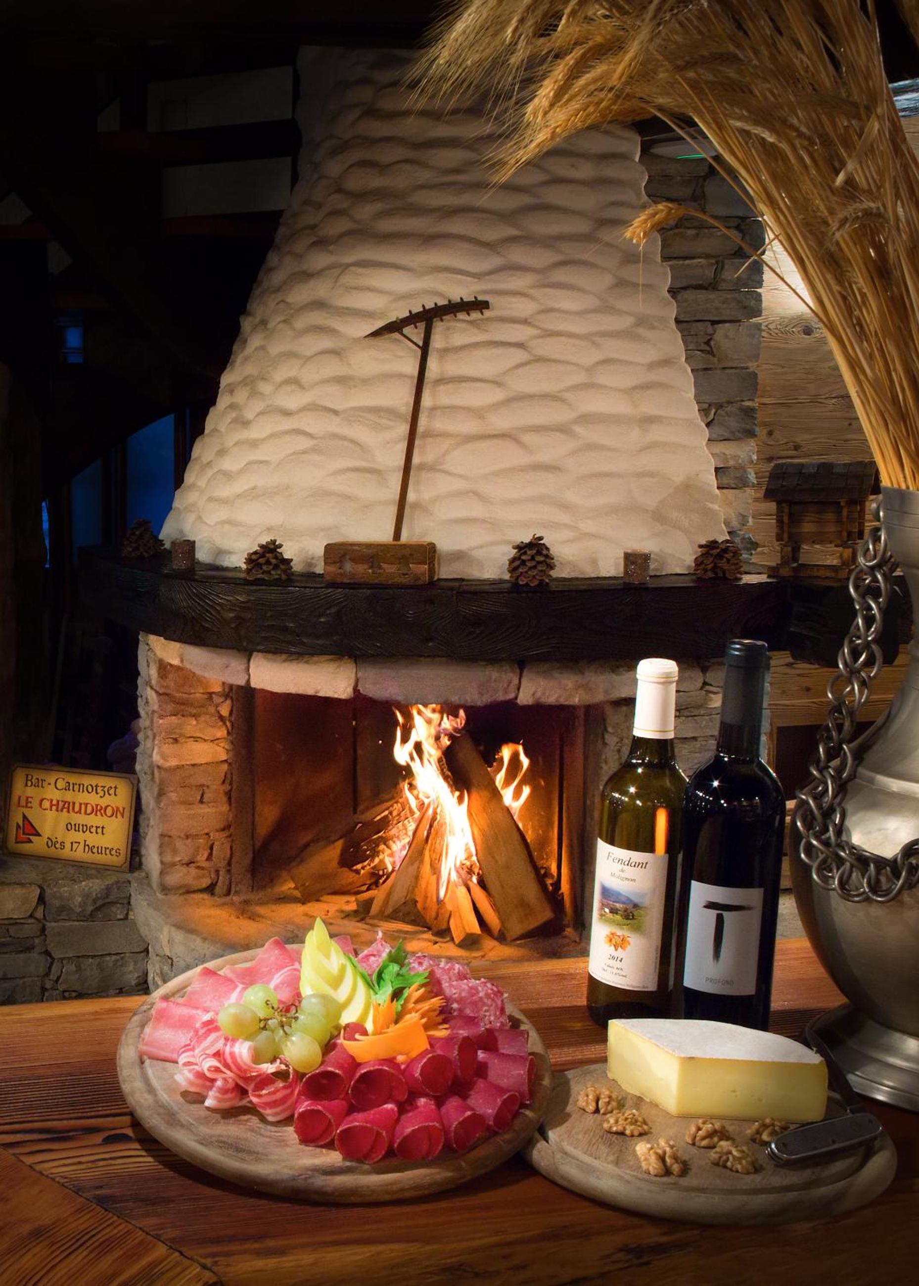 Relax in our spacious restaurant and lounges, including the warm and traditional 'Carnotzet' and Chaudron Bar.
