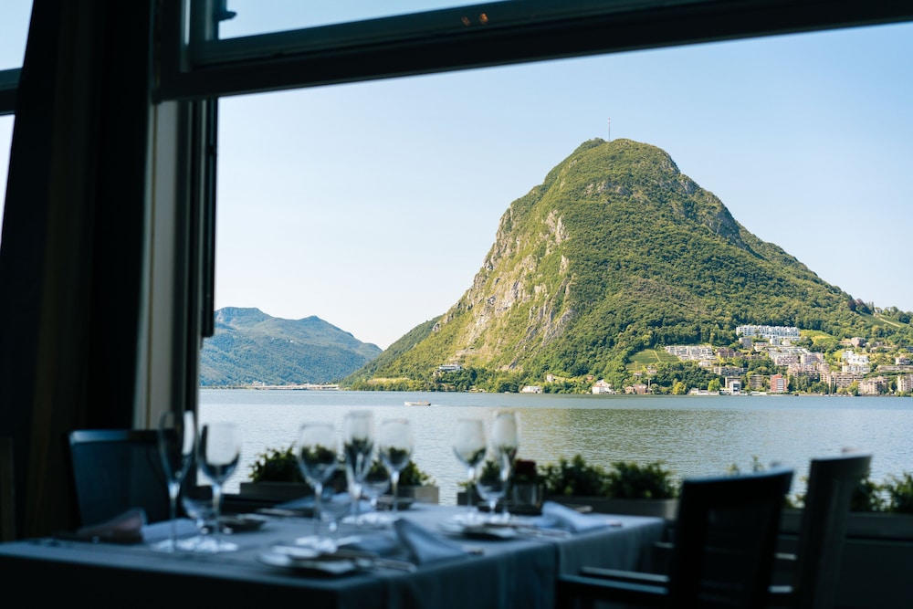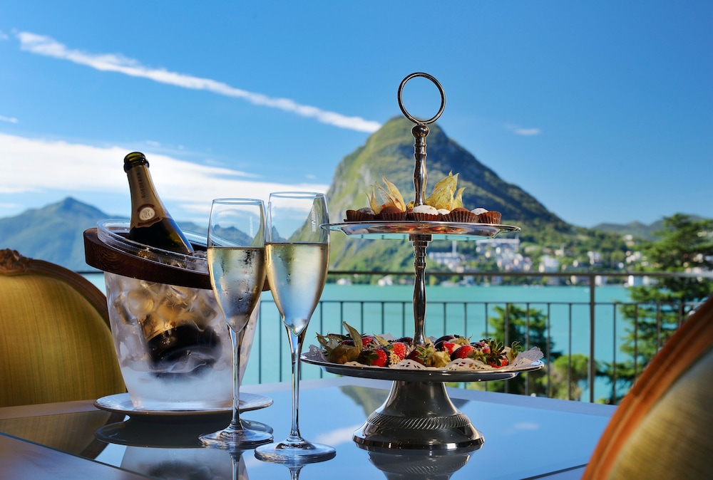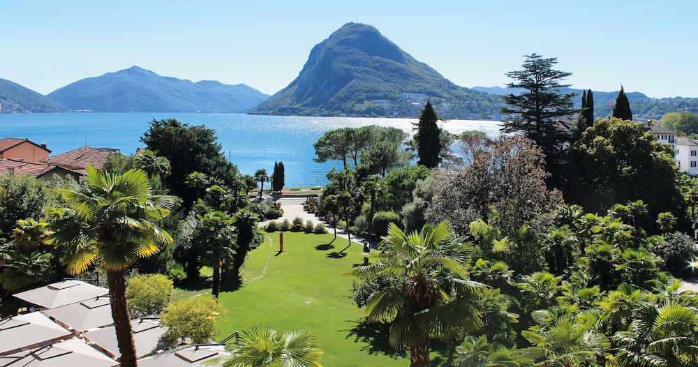 The garden is lovely, the location perfect with the bus just by the property to bring you to the center of Lugano in 5 min., two restaurants, both very good with attentive staff, the lobby area is grand and reminds of how it used to be to travel, great piano player durning drinks and dinner, lovely spa area.