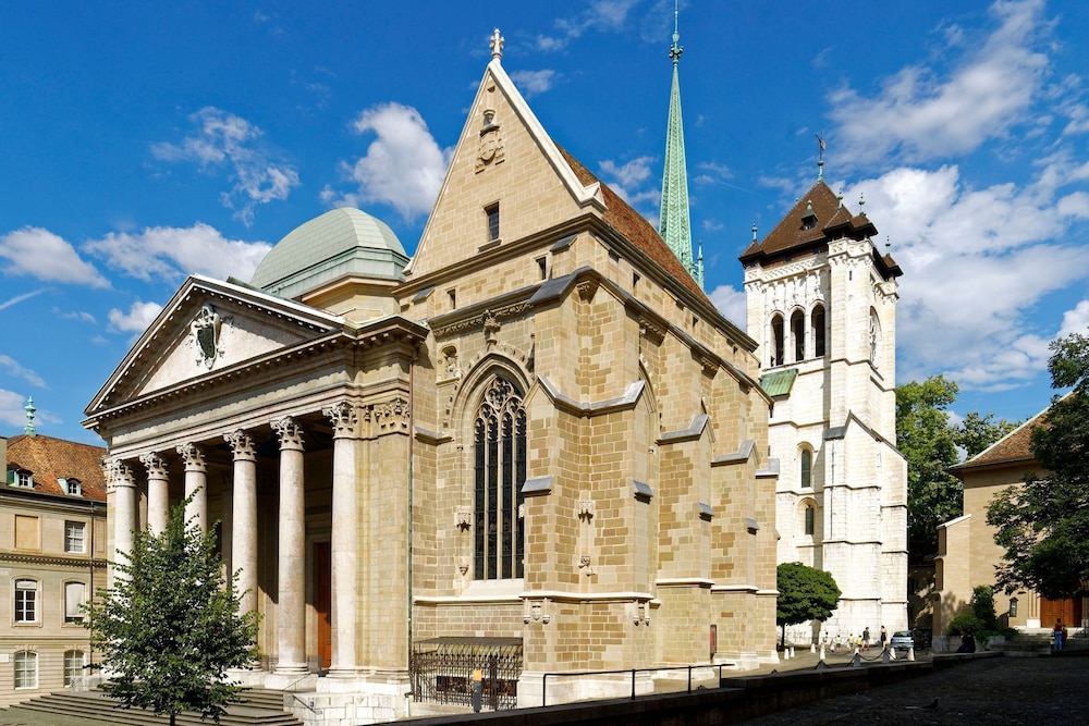 Explore the vibrant city with key attractions like Rue du Rhône and the stunning Jet d'Eau Fountain just minutes away. Our convenient proximity to Geneva International Airport makes traveling a breeze.