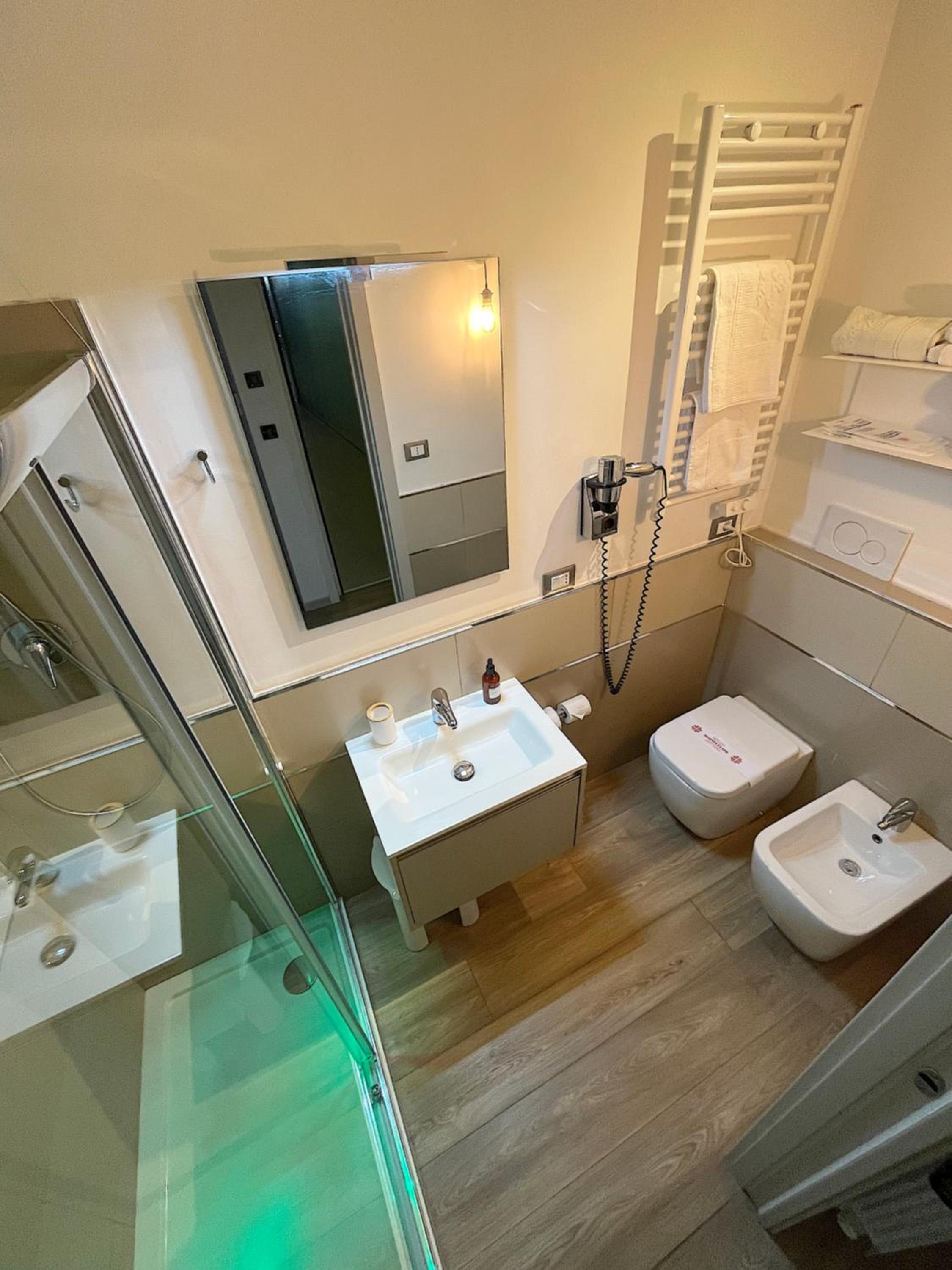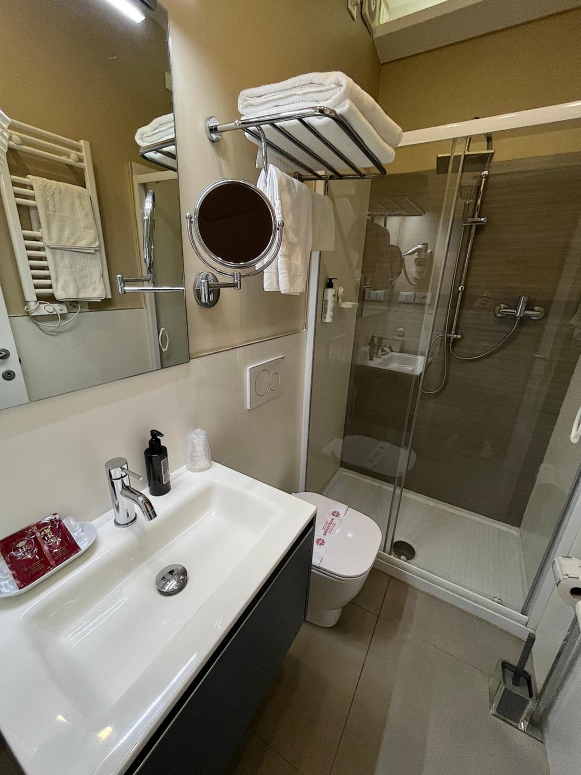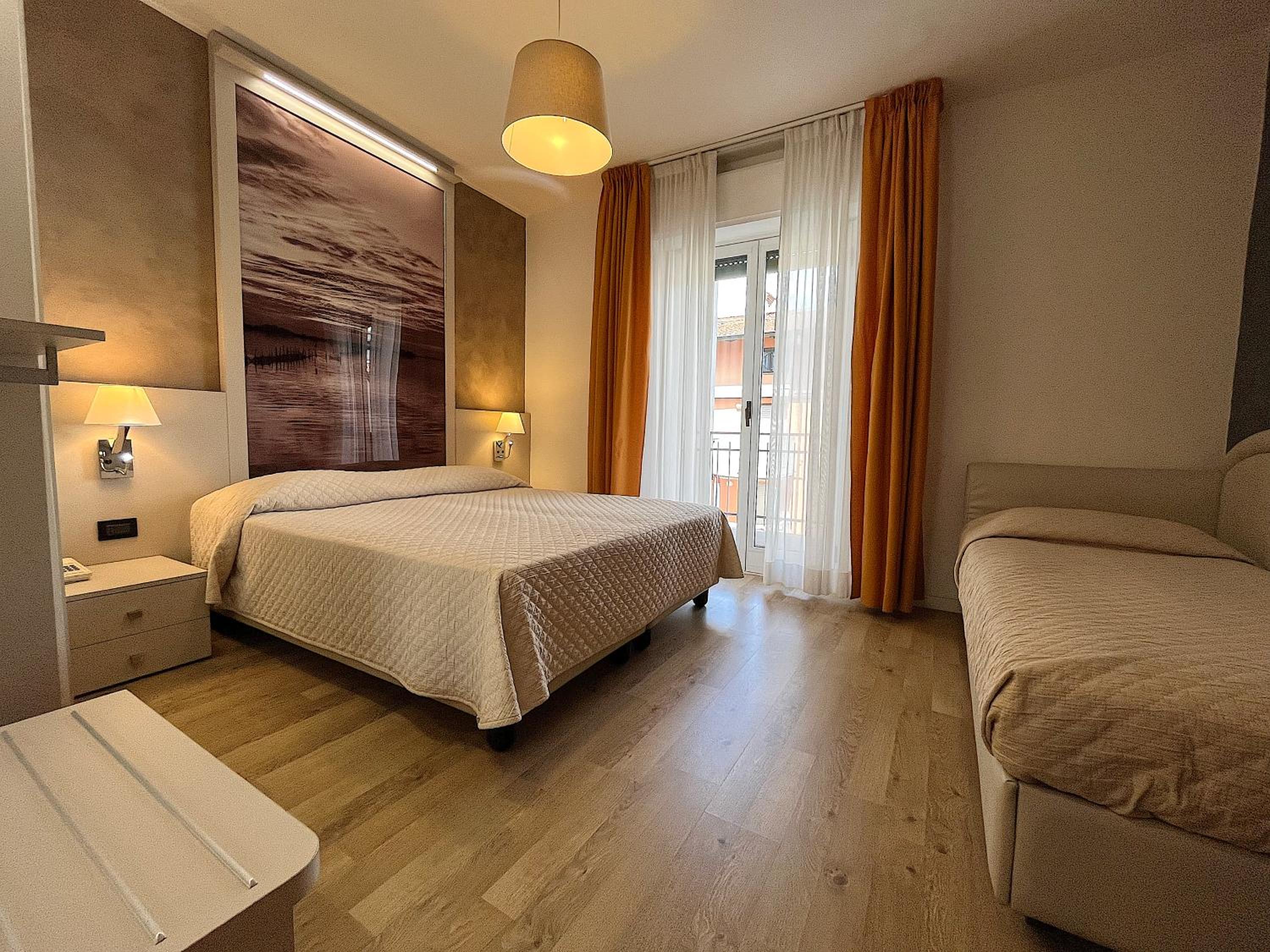 Indulge in the elegant rooms at Hotel Regina, each equipped with a balcony, air conditioning, and satellite TV. The private bathrooms feature a hairdryer and shower for added convenience and comfort during your stay.