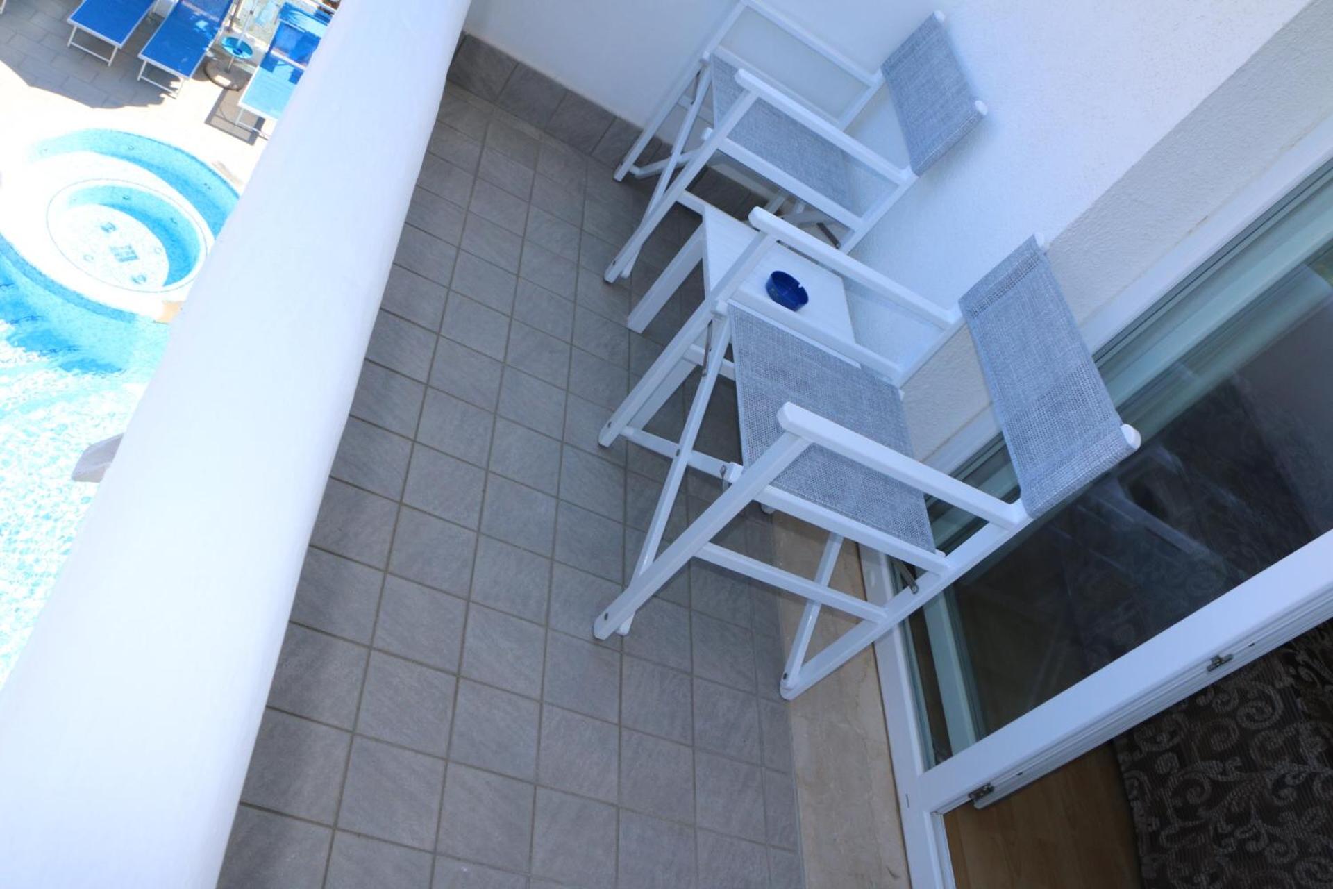 Piscina bellissima, posizione ottima vicino al centro e a diversi servizi come farmacia e supermercato, colazione a buffet molto buona e ben fornita. Staff super disponibile, stanze piccole purtroppo ma con una grande terrazza comoda e dotata di sedie e piccolo stendino.