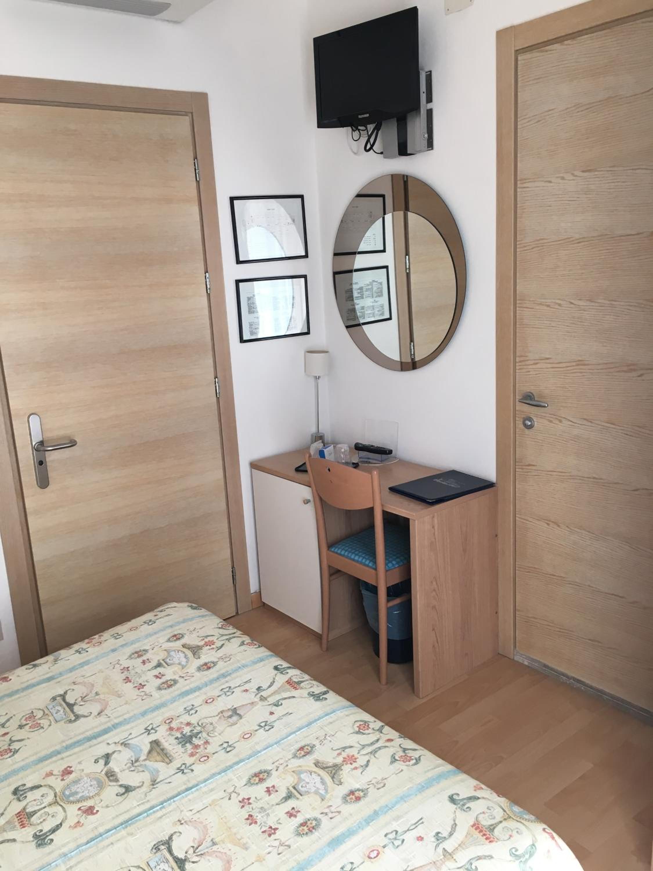 Wir hatten ein dreibettzimmer gebucht. Größe vollkommen in Ordnung, überraschend viel stauraum, neu renoviertes Badezimmer, schöner Balkon.