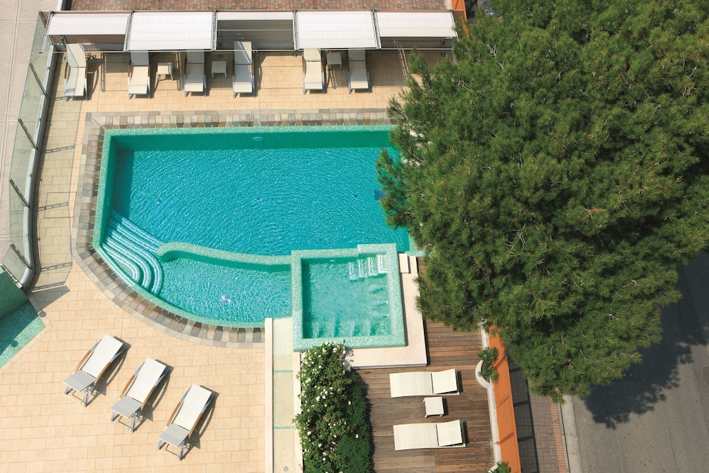 Dive into relaxation with our outdoor and indoor pools, or stay active in our well-equipped fitness center. Enjoy the sun with a refreshing drink at the poolside bar after a fun day of exploring Jesolo.