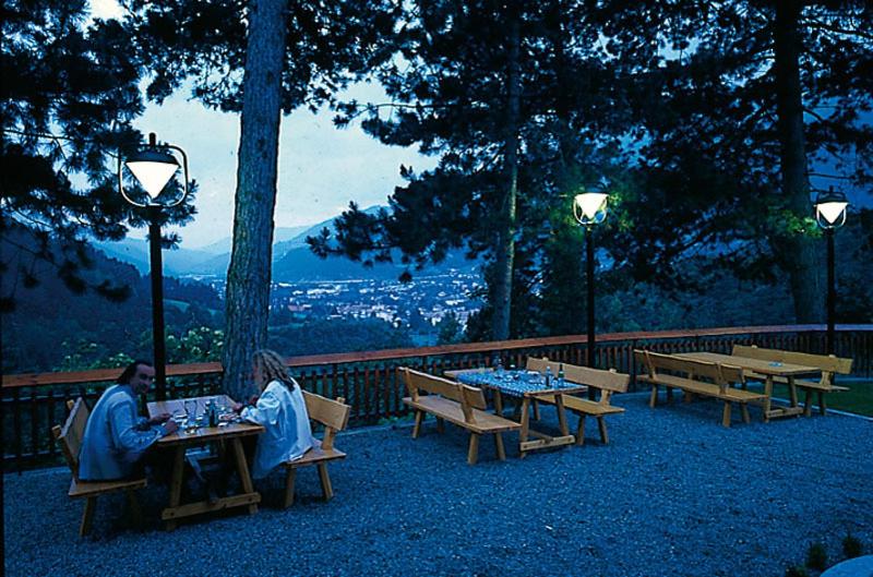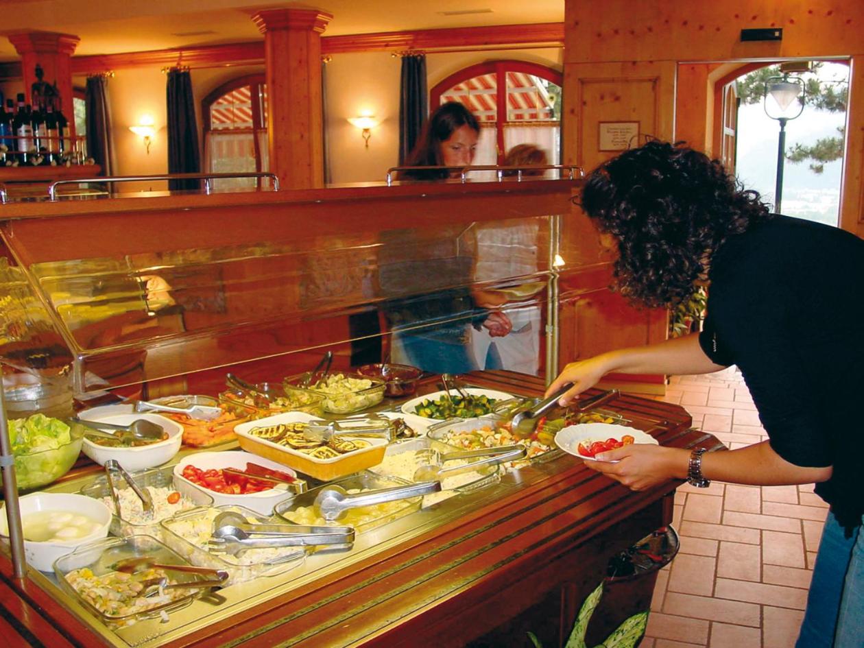 El restaurante es una maravilla, con un desayuno buffet delicioso (especialmente su apfelstrudel) y cena de pizzas (top) y ensalada.