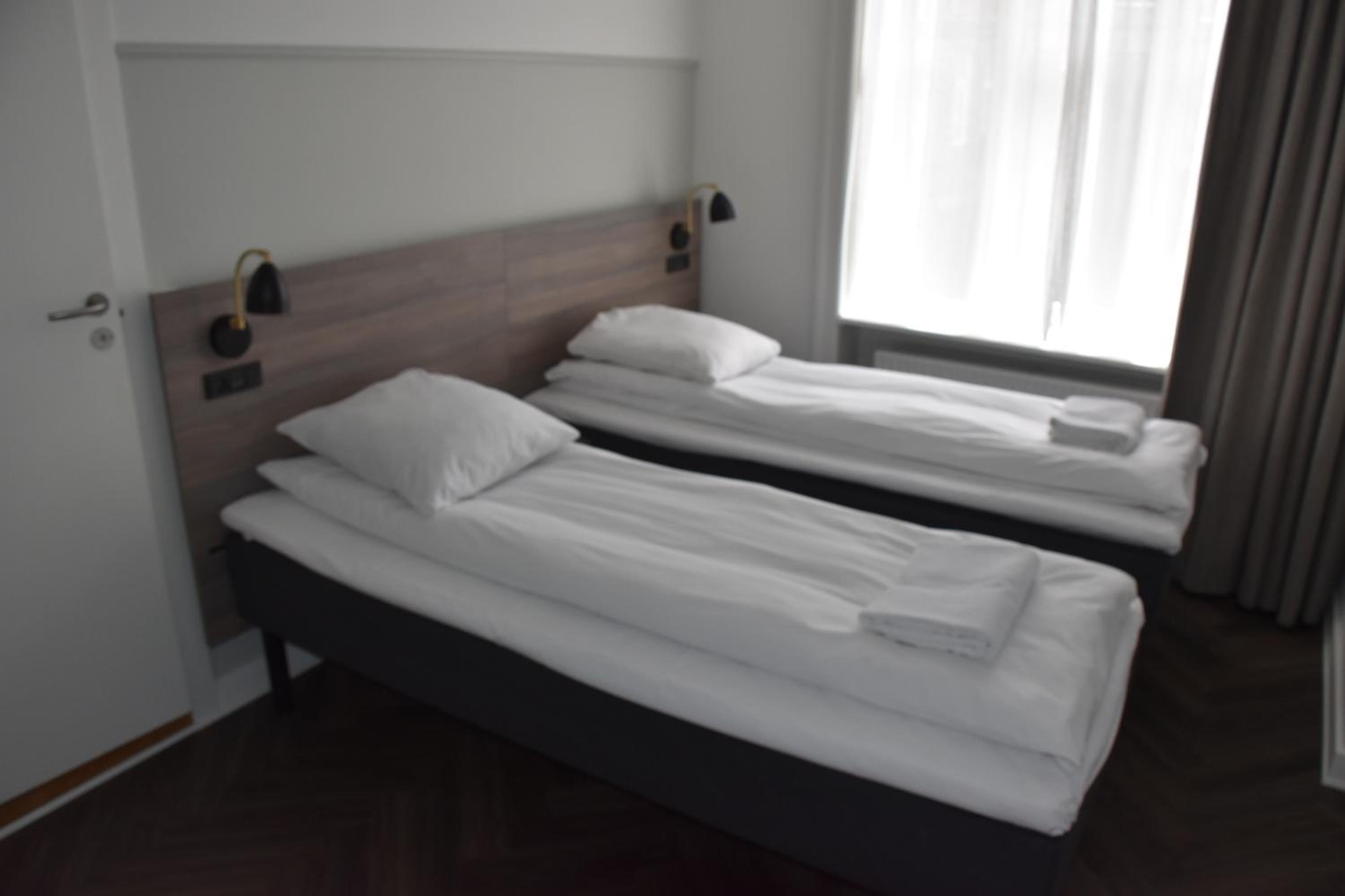Sengene var hårde at ligge på og jeg er vant til en forholdsvis blød seng. Booket med toilet på gangen - eneste mulighed - men det fungerede ok.