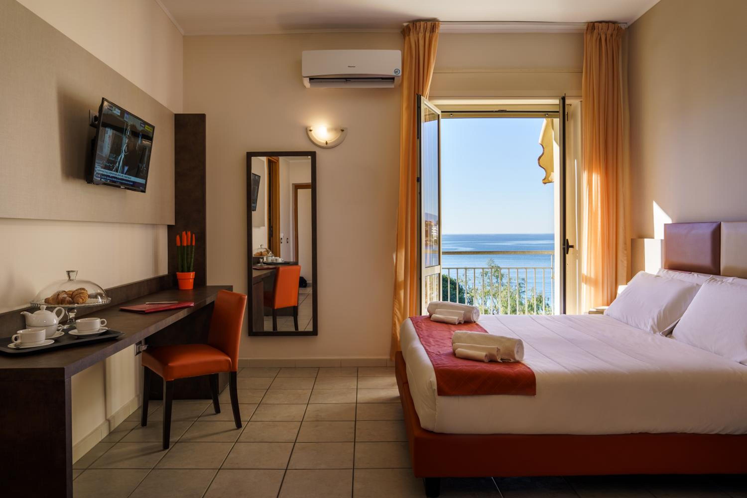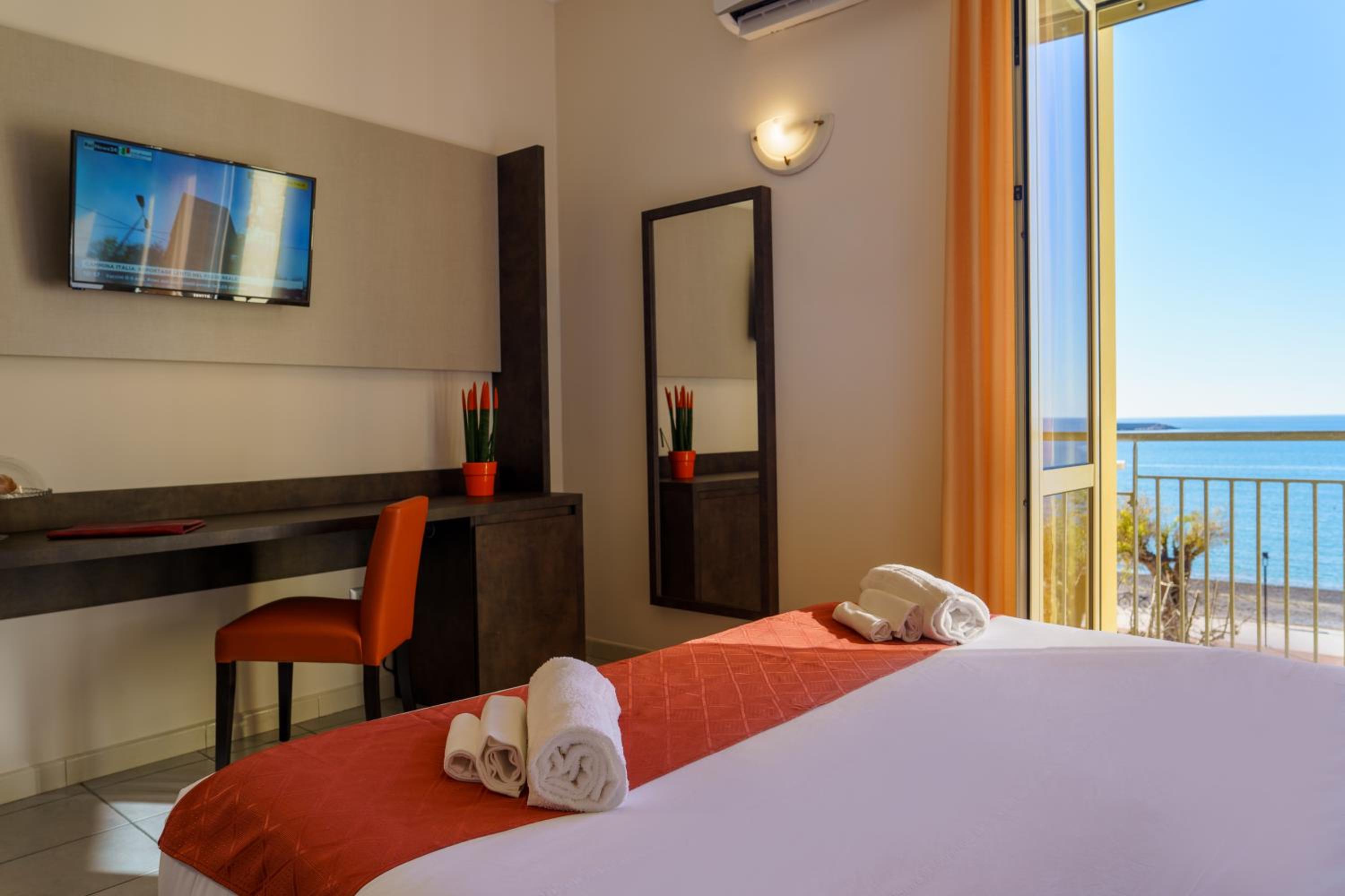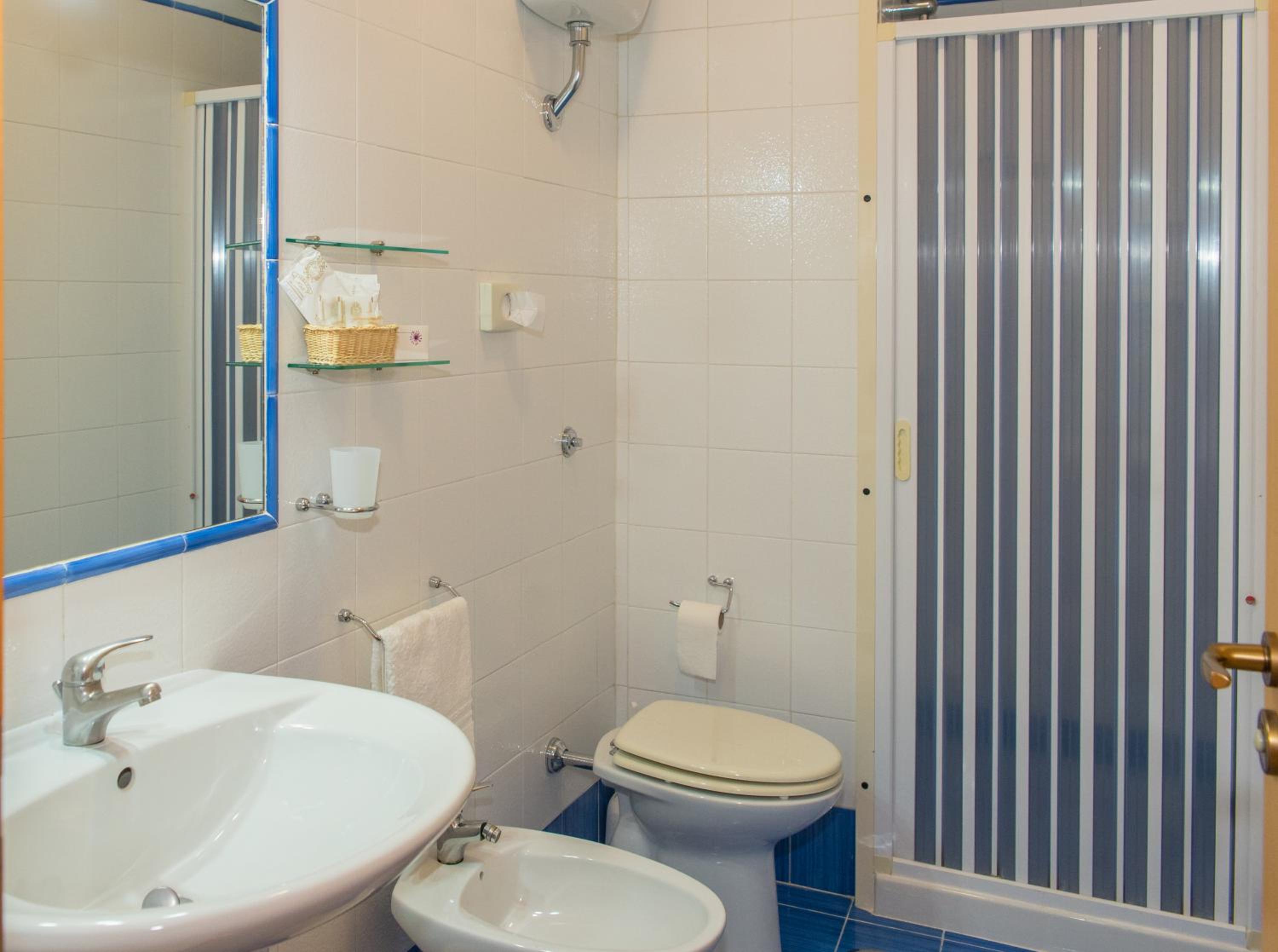 Hotel Tirreno offers simple yet elegant rooms with air conditioning, TV, and fully equipped bathrooms. The rooms provide a comfortable retreat after a day of exploring Sapri.