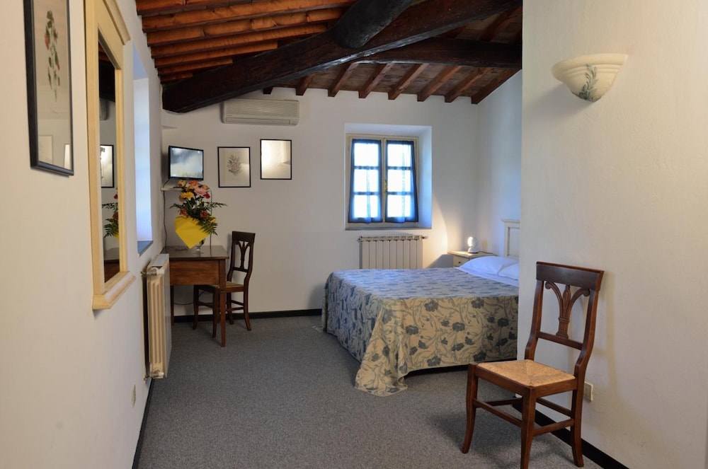 Bra standard på rom og bad. Fint turterreng for mosjon. Sentralt for bilturer i Toscana og Siena området. Ikke særlig spennende sted å bo, men rimelig.