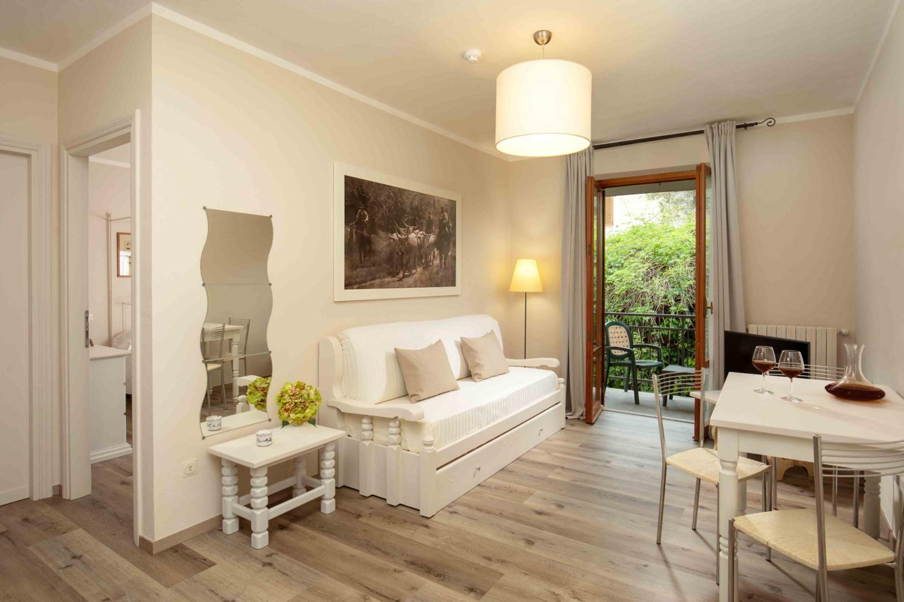 Enjoy the comfort of air-conditioned rooms and apartments with unique furnishings, parqueted or tiled floors, free Wi-Fi, and satellite TV for a pleasant stay.