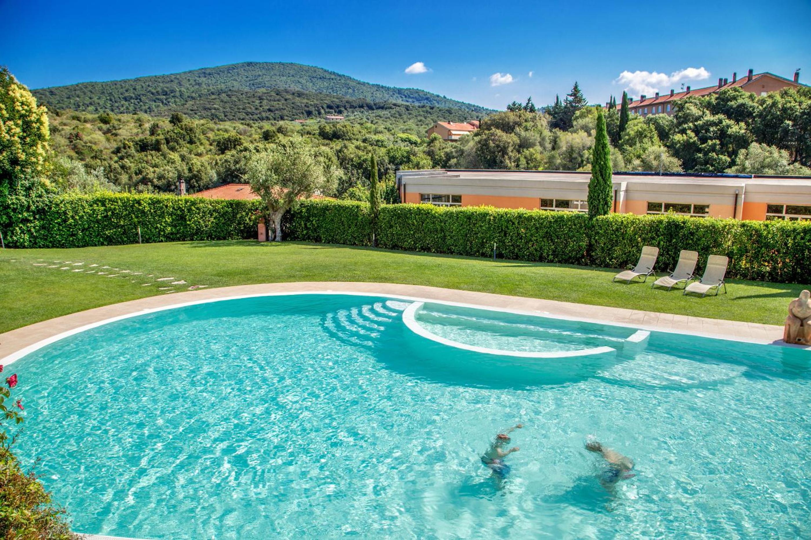Valle Del Buttero features a refreshing outdoor pool surrounded by a vast Mediterranean garden, offering a tranquil oasis for relaxation and leisure.