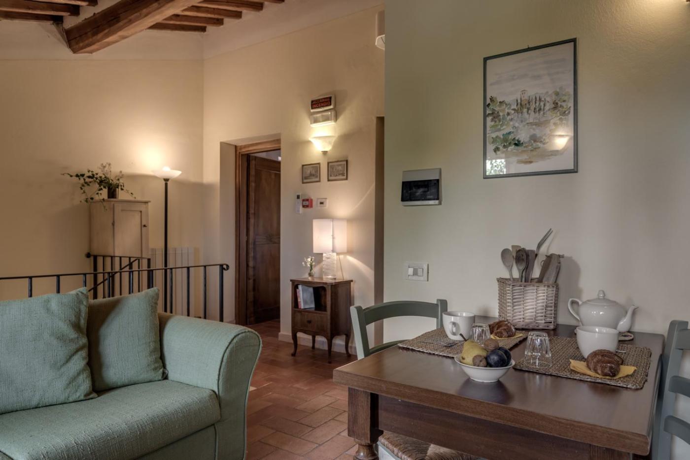 Nestled in the heart of Toscana, Borgo al Cerro offers a tranquil escape with rustic apartments featuring terracotta floors. Indulge in the fully equipped kitchen, spacious living areas, and modern amenities like satellite TV.