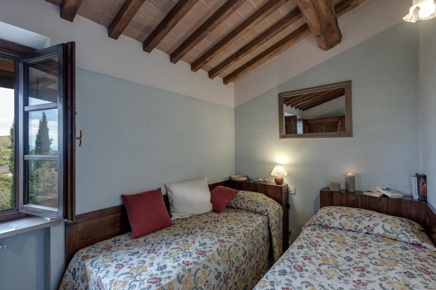 Die Unterkunft liegt sehr ruhig und ist ein toller Ausgangspunkt um Städte in der Toskana wie Siena oder Arezzo zu besuchen. Die Gartenanlage ist ein Traum. Die Inhaber sind sehr nett und hilfsbereit.