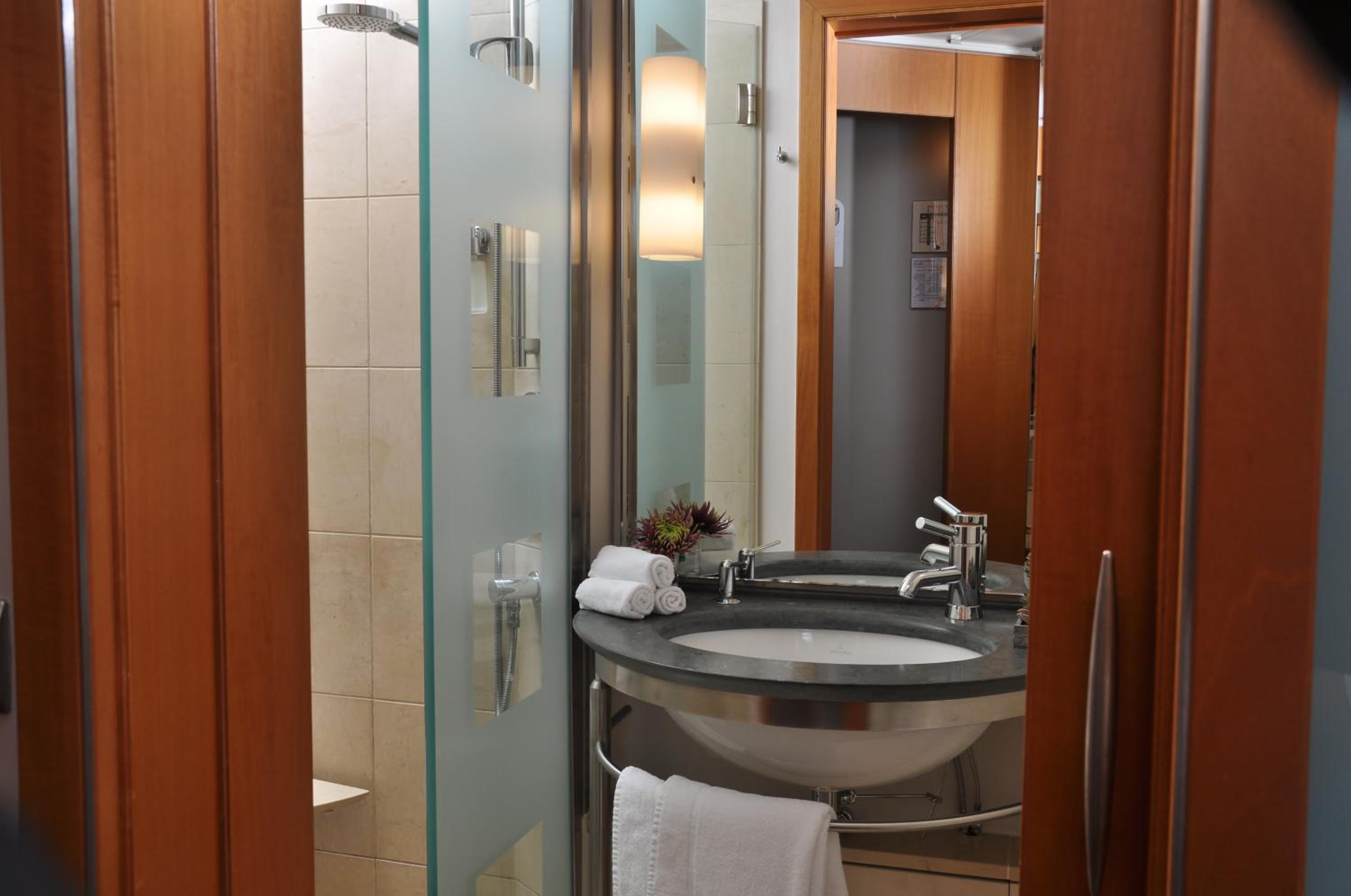 Guests have free access to a modern spa with an indoor pool, sauna, and fitness room. Perfect for unwinding after a day of exploring the city or business meetings.