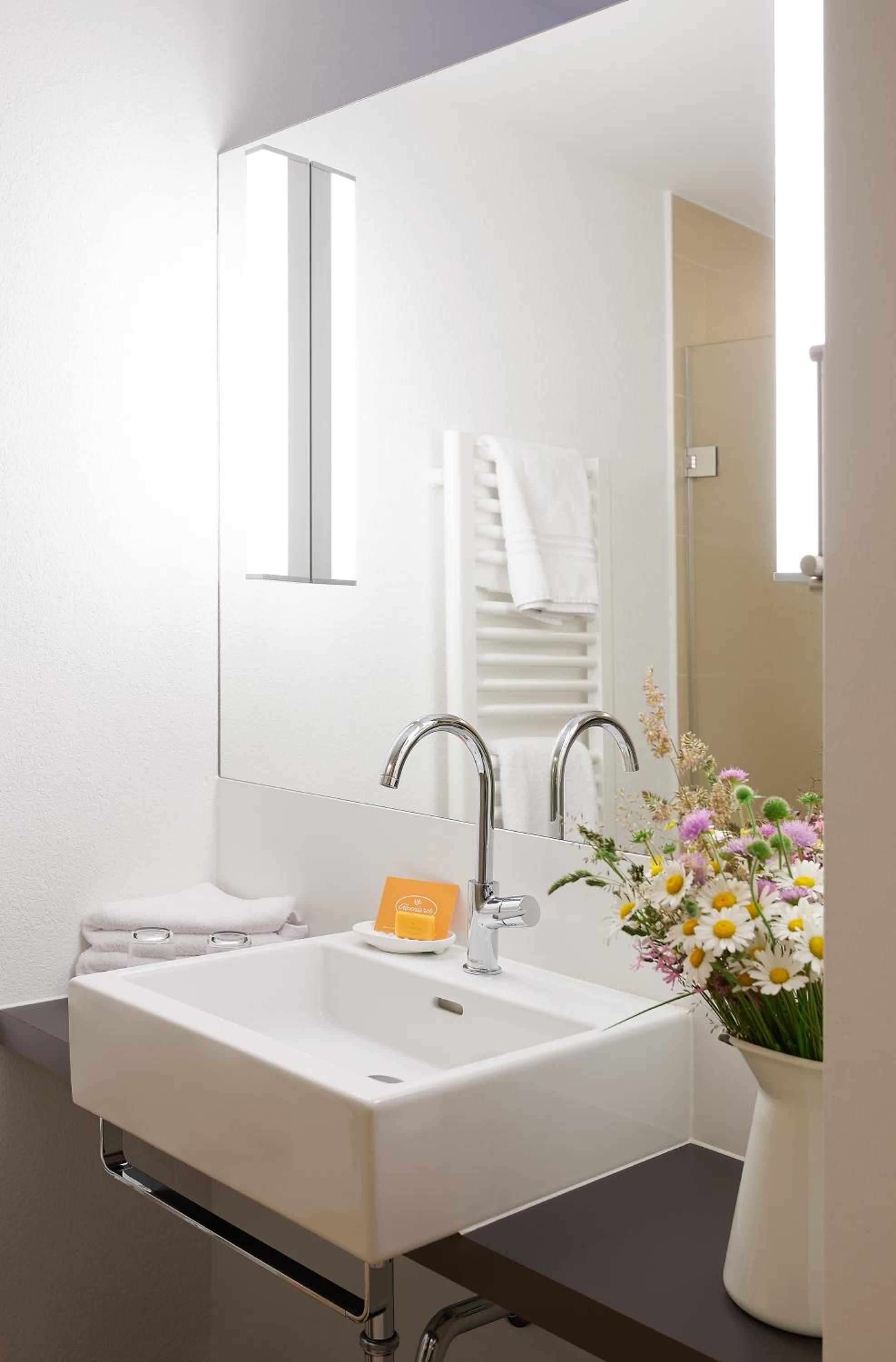 Besonders positiv: ein angenehm großes Bad mit geräumiger Dusche – und die Toilette separat.