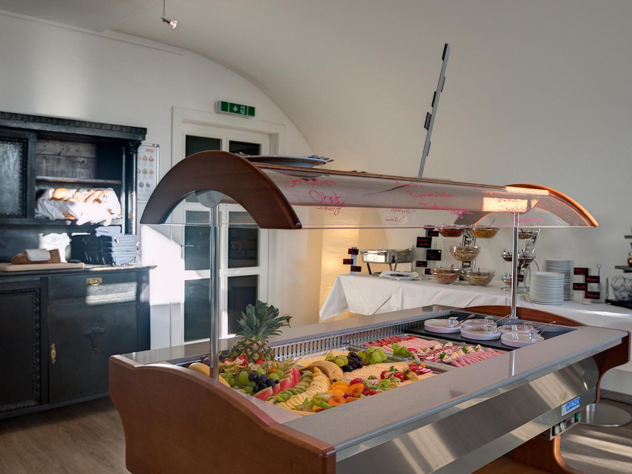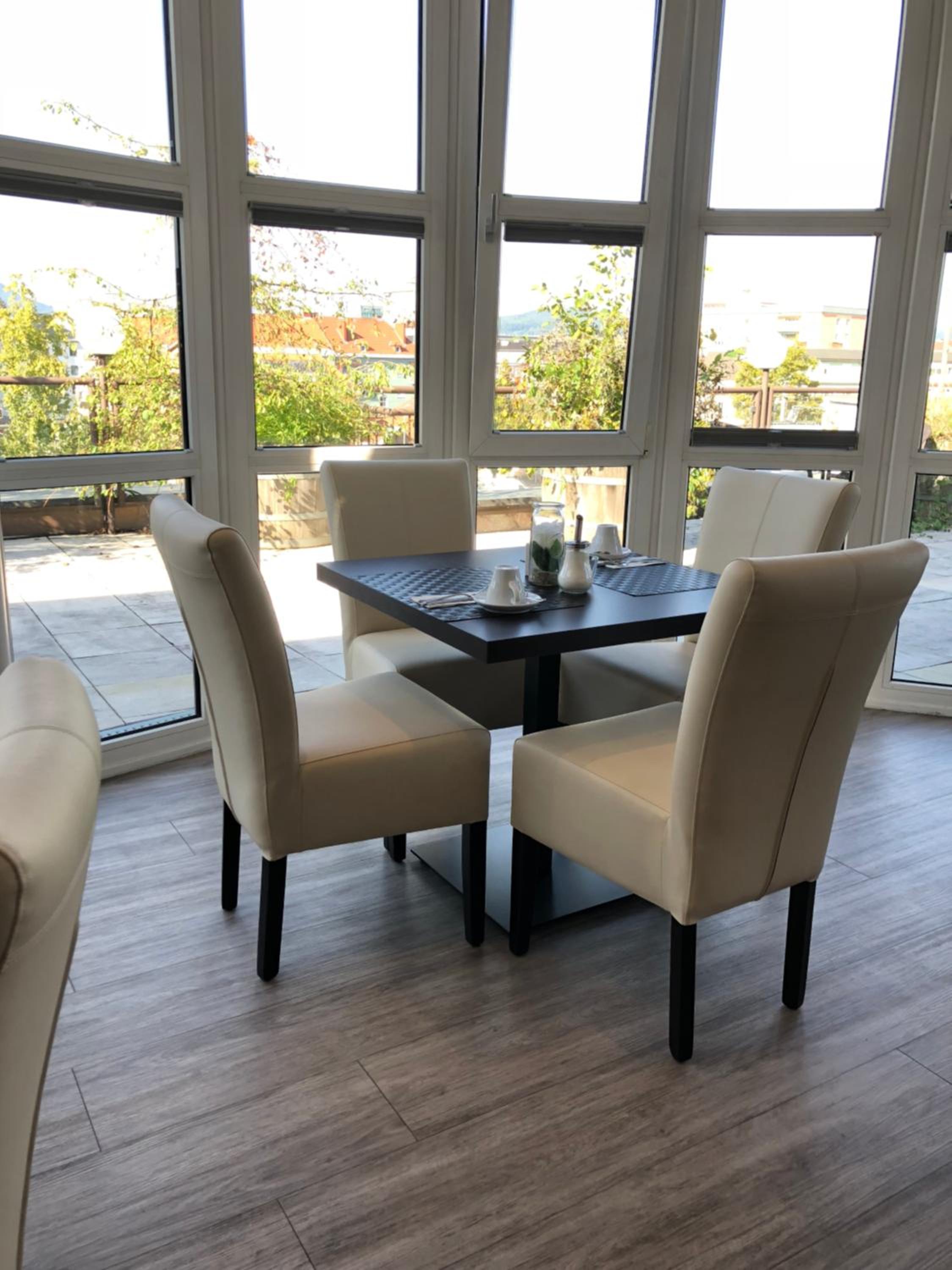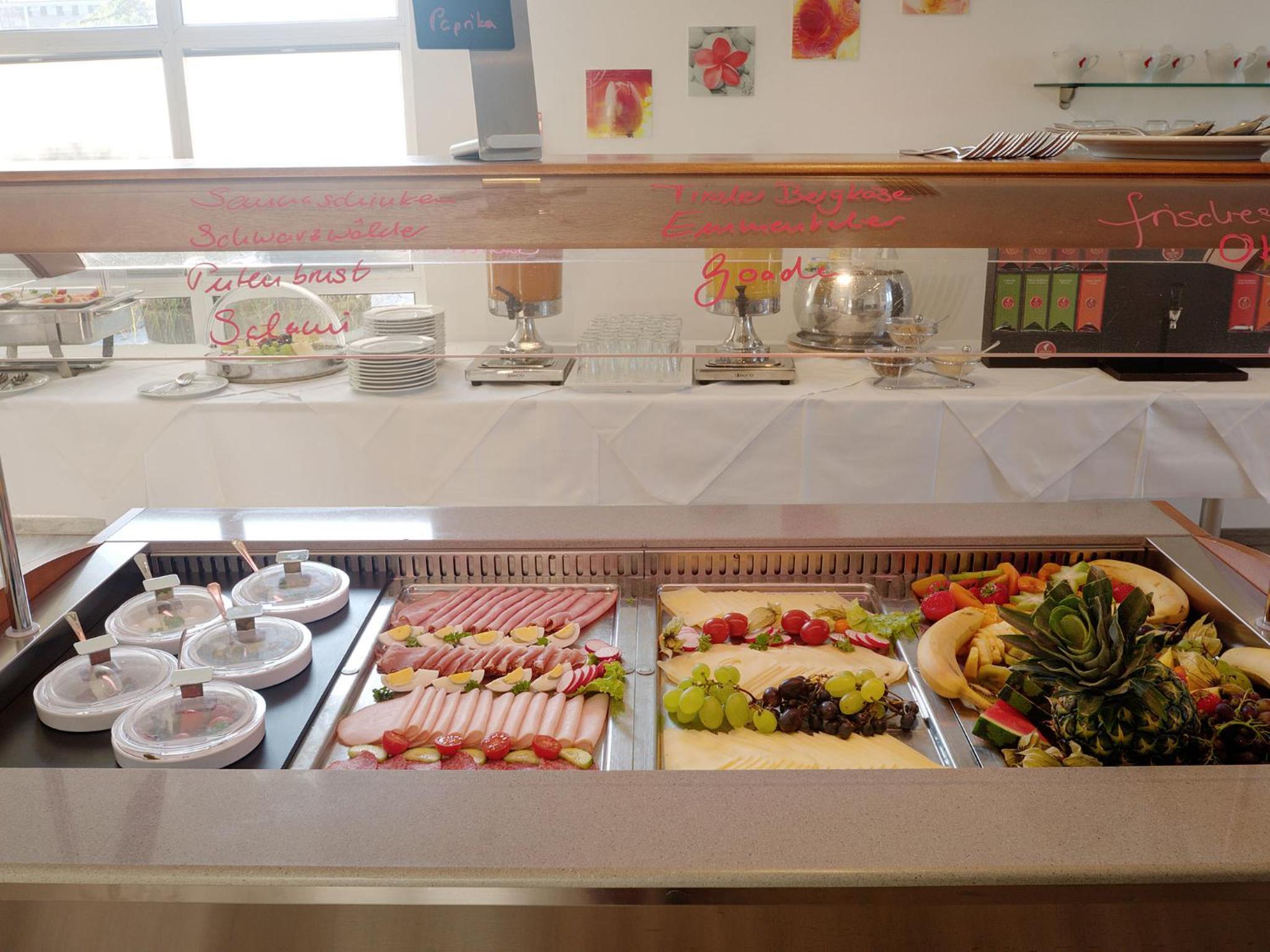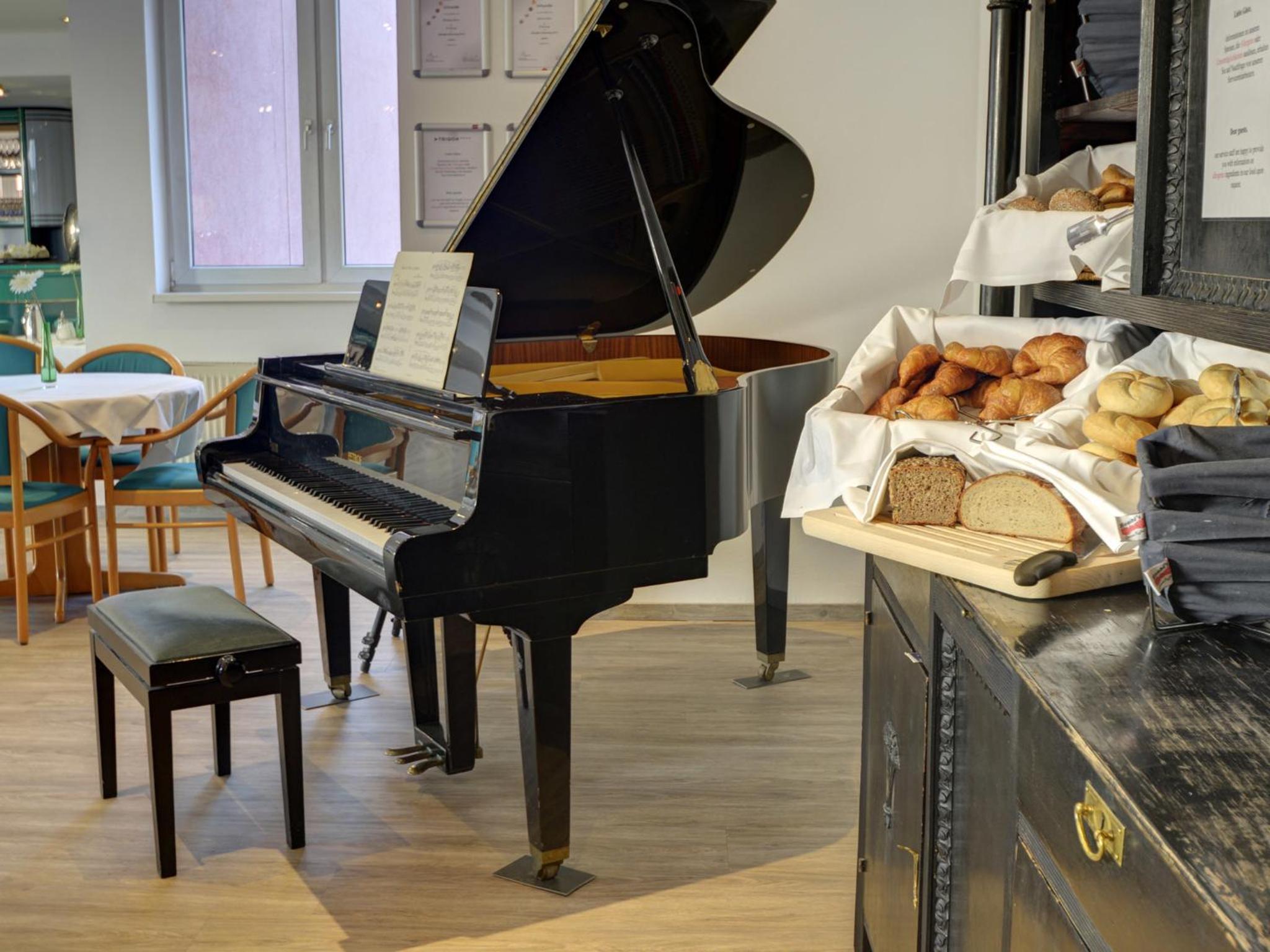 Start your day with a delicious breakfast buffet in the light-filled breakfast room with city views. On sunny days, savor your breakfast on the charming roof terrace overlooking the surroundings.