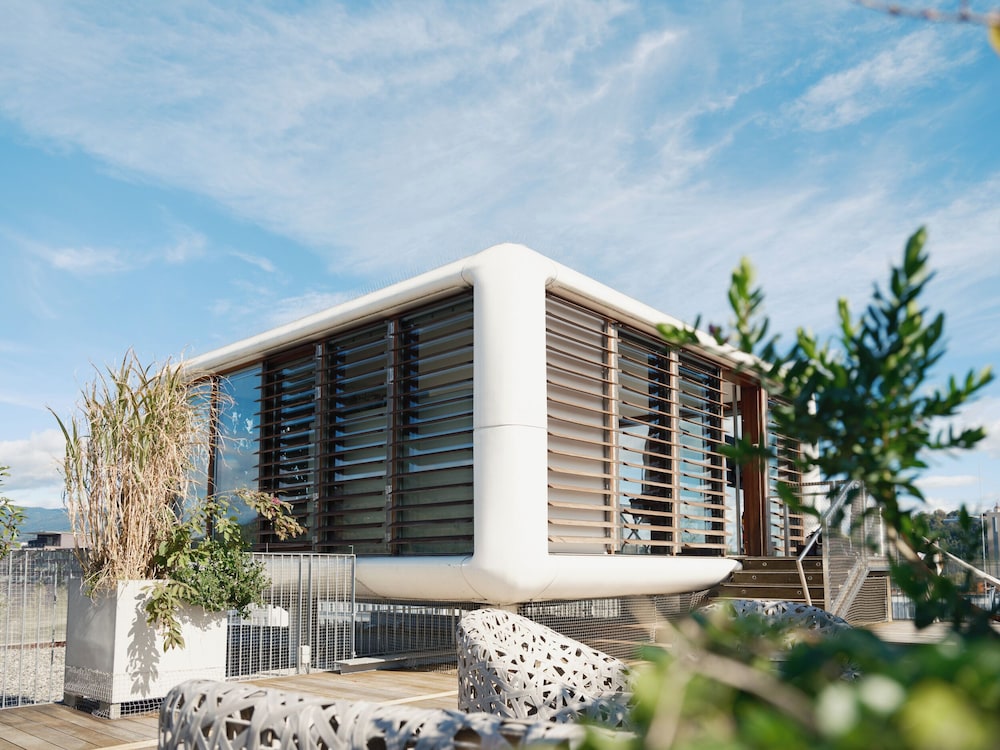 Von außen sehr stylisches Hotel. Innen leider etwas schmuddelig, muffiger Geruch. Das Zimmer war sauber, es fehlt aber ein Kühlschrank und evtl. ein Getränkeautomat. wir haben das Hotel nur gebucht, weil lt. Beschreibung Parkplätze vorhanden sind. Leider waren ständig alle Parkplätze belegt - kein Wunder bei nur einer handvoll Parkplätzen. So mussten wir in der öffentlichen Garage parken und 25€ pro Tag zahlen.