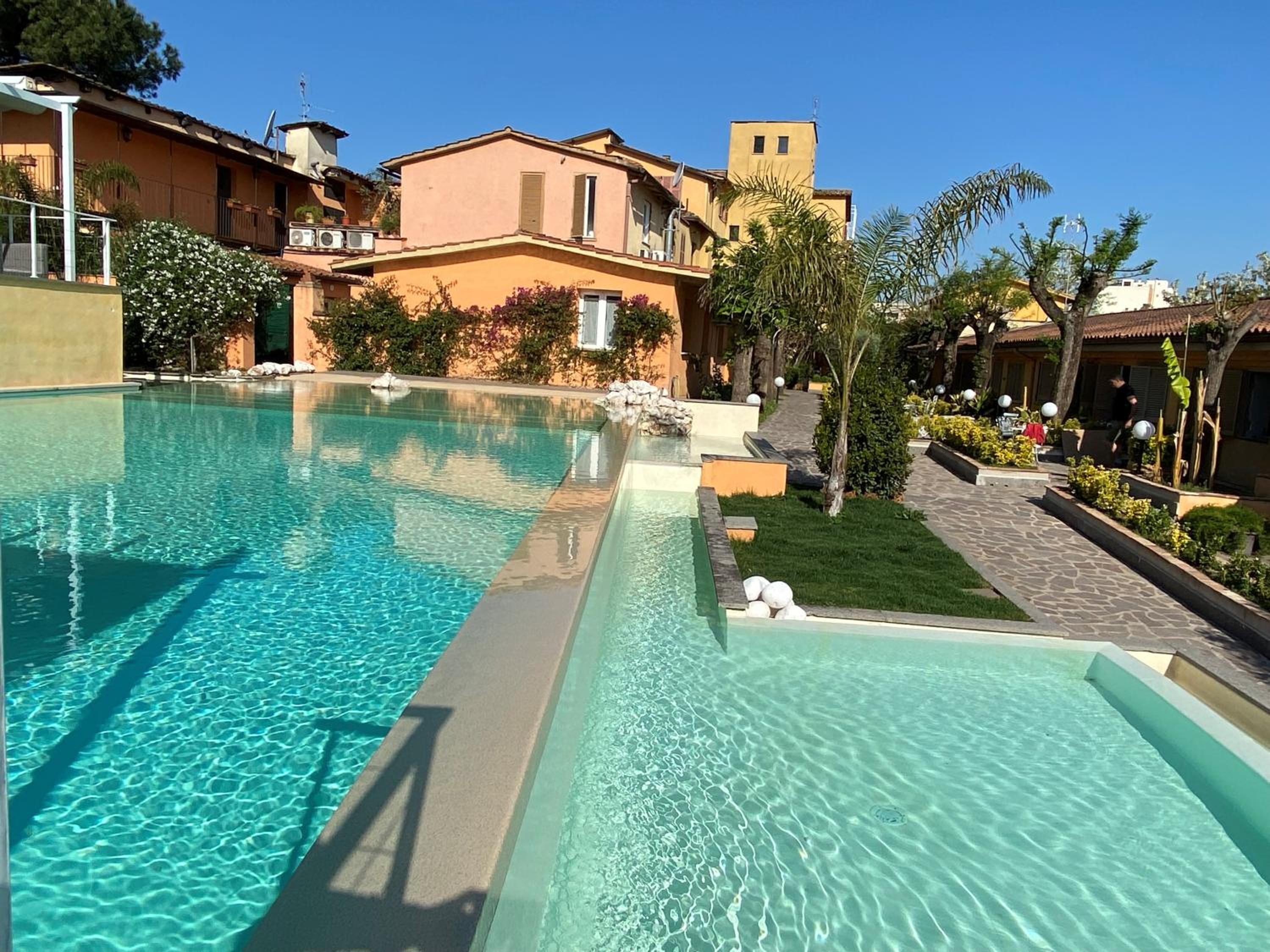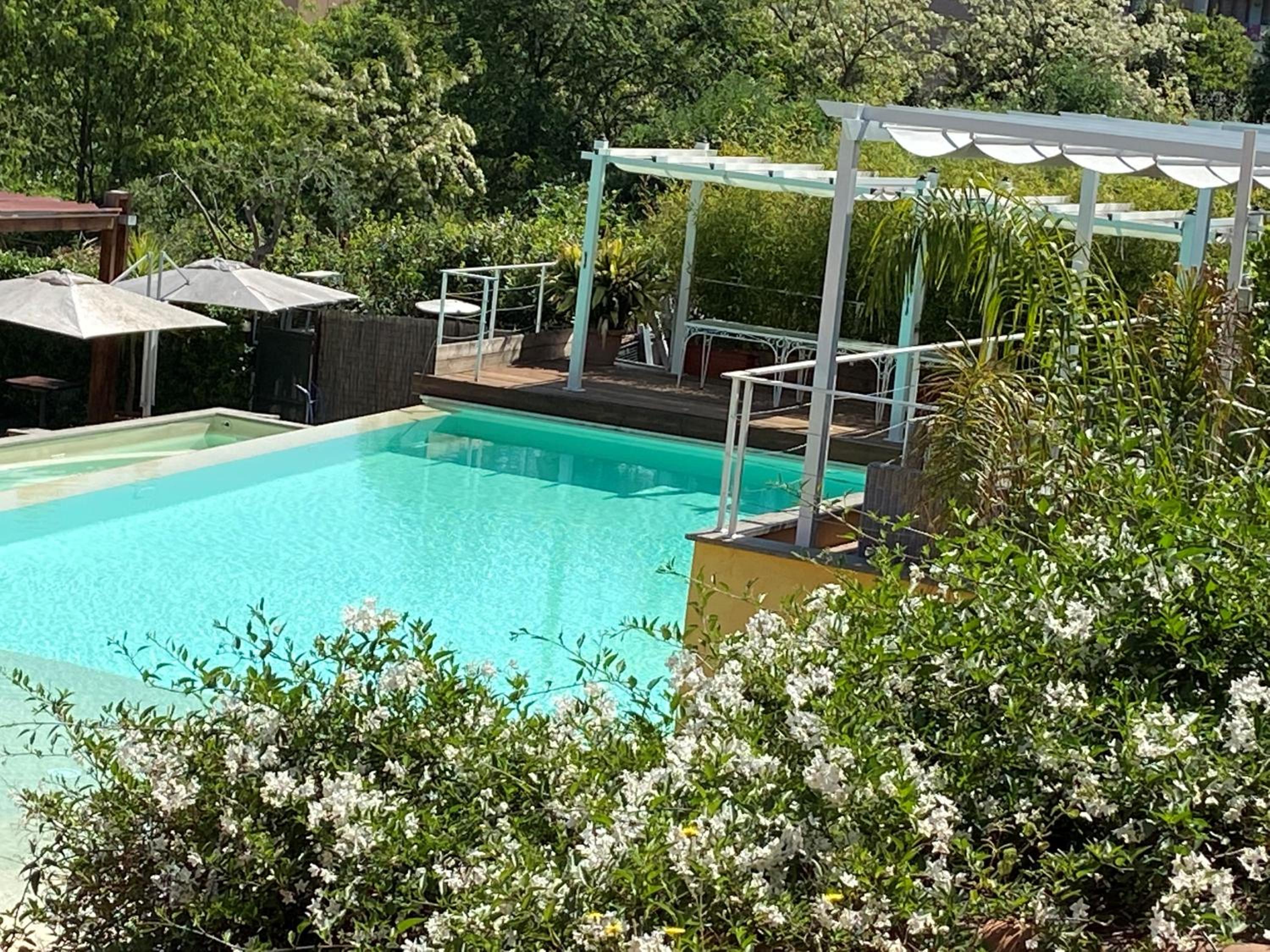Tienen un magnífico restaurante, que es caro pero donde se come de escándalo. Para mi la ubicación era adecuada porque está cerca del lugar a donde iba a trabajar, pero para visitantes de Roma centro queda muy lejos y creo que con acceso complicado al centro. Tiene aparcamiento si vas con coche. Tranquilo y tiene una bonita piscina.