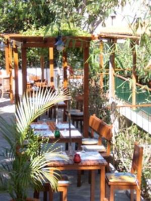 The Garden restaurant is up 3 short flights of stairs and is partailly covered, it has a nice relaxed atmosphere and the food is superb , especially the skewers.