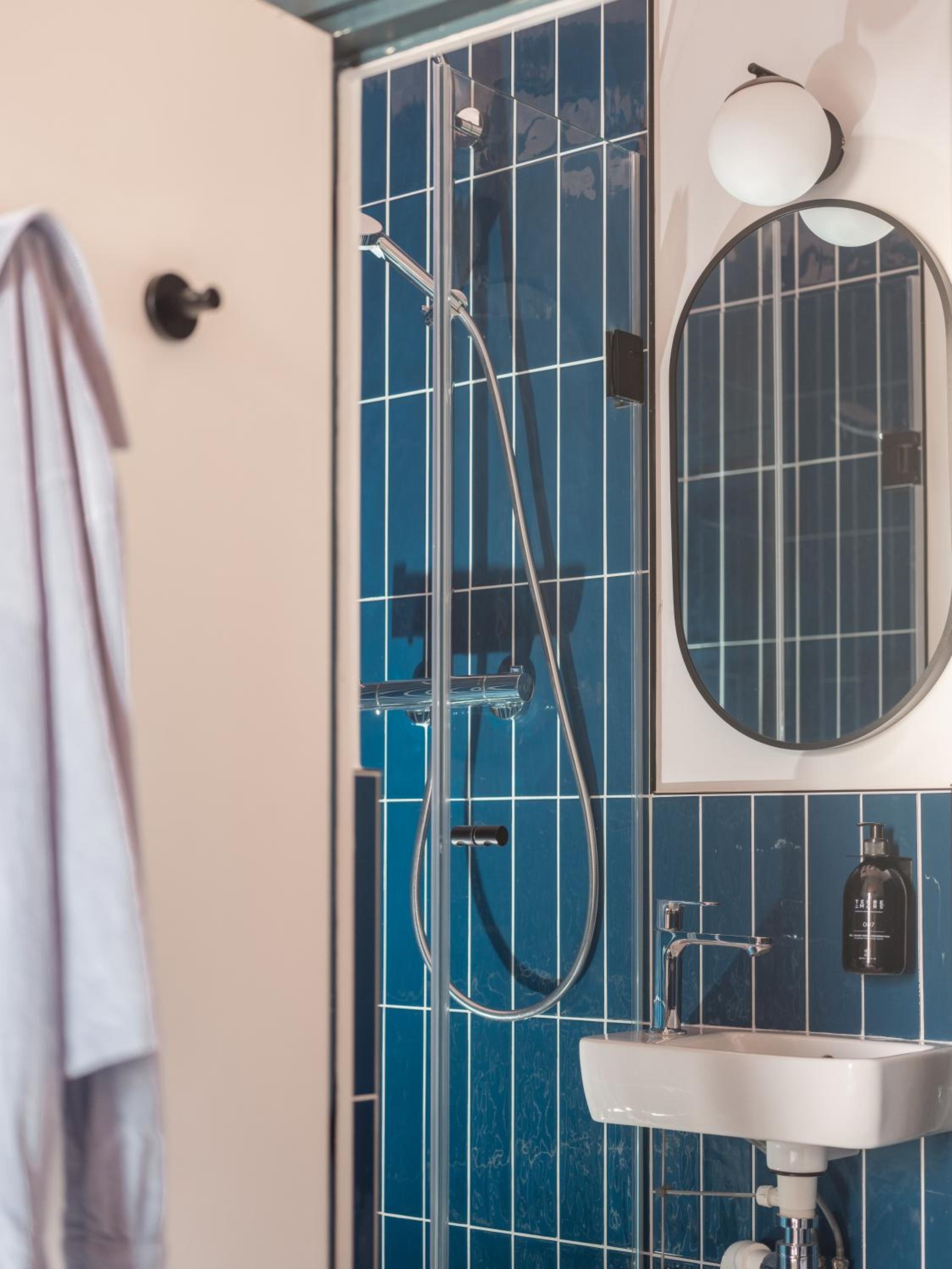 In the single rooms, there is no separation between the bathroom, the toilet and the room.