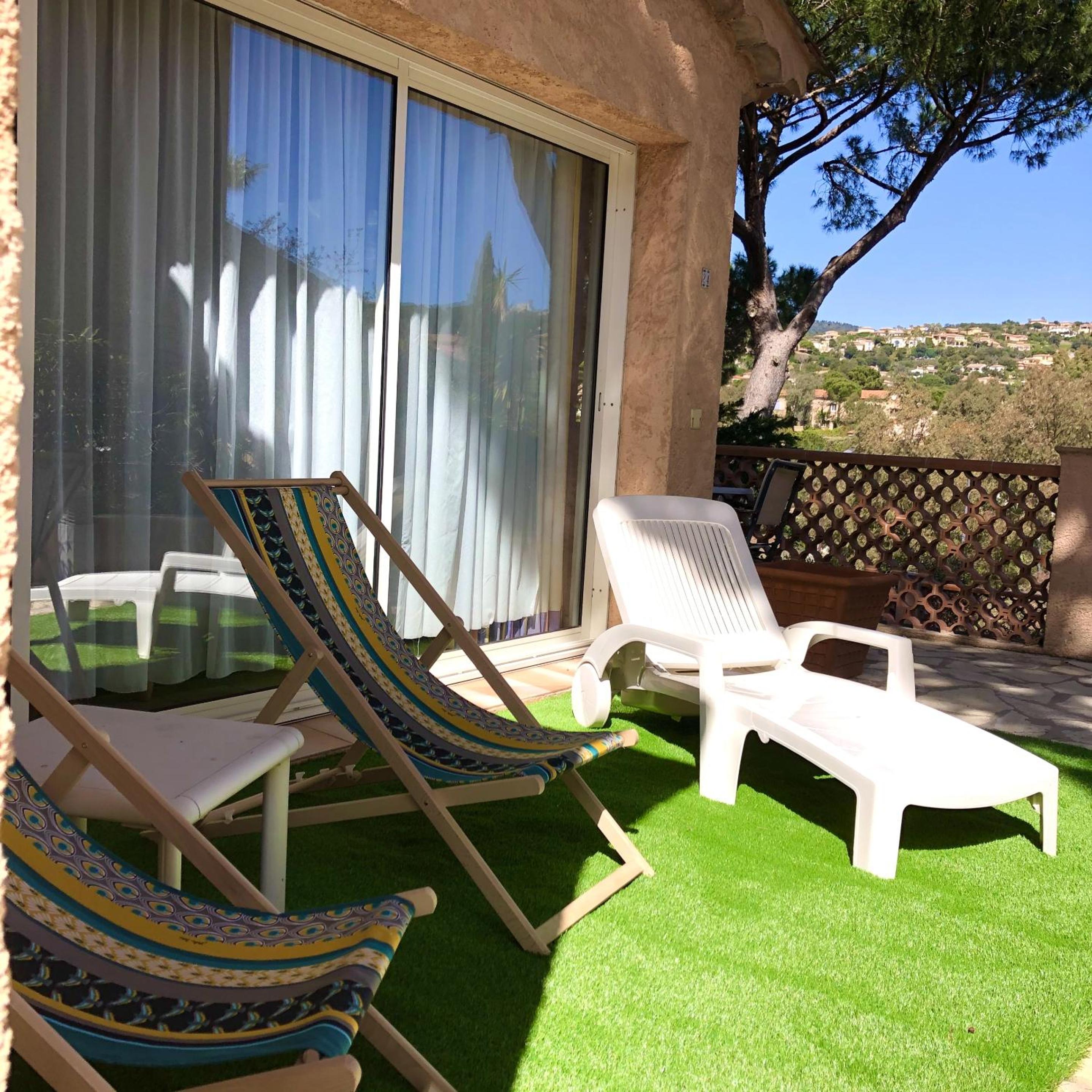 Enjoy stunning views of the Sainte-Maxime Golf Course from the comfort of your private terrace or balcony. Unwind by the heated pool or explore the area with convenient bike rentals.