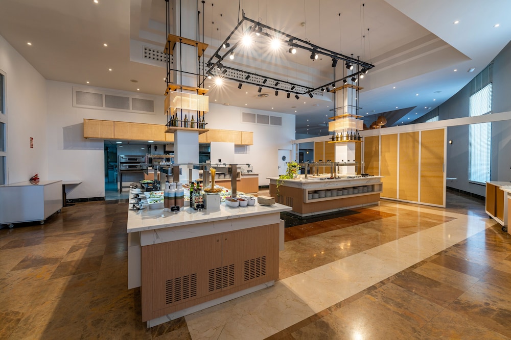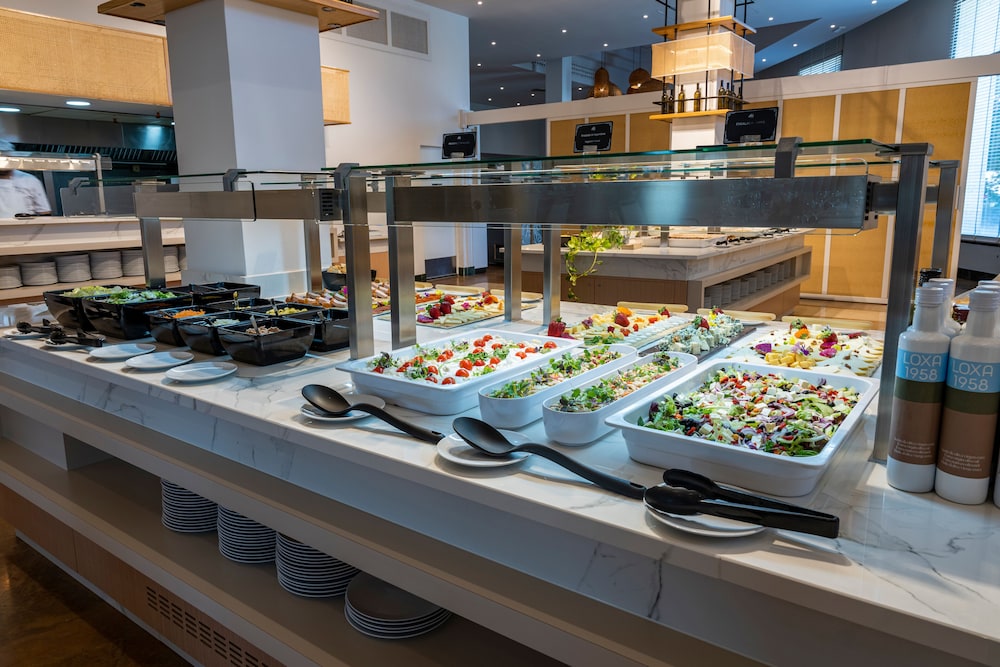 Ficamos uma noite com meia pensão (jantar). Comida fria e de muito fraca qualidade. Sobremesas todas artificiais. Pequeno almoço sem um único sumo natural (tudo sumos aguados e cheios de açúcar). Café de máquina a saber mal. As 20h somos expulsos da piscina ( com o calor ainda se faz sentir aquela hora…) sendo que a piscina é boa e o espaço exterior também. O único positivo é a cama ser confortável e a casa de banho tb era bastante grande. Os funcionários também eram simpáticos !