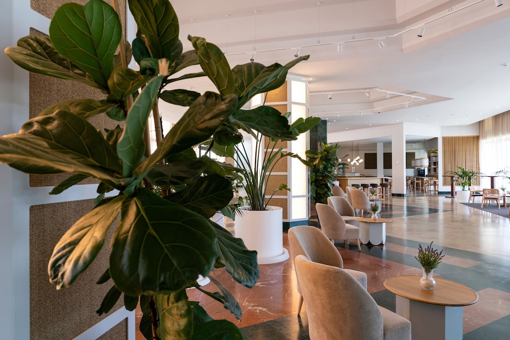 Déception absolue. Premièrement à l’arrivée: notre demande de grand lit n’a pas été honorée et aucune solution ne nous a été proposée. Nous avons dû dormir 9 nuits dans 2 lits séparés avec un trou entre les deux matelas ! Ensuite, personne ne nous a prévenu à l’arrivée qu’un groupe de 200 personnes arrivait 2 jours après pendant 3 jours. Nous recherchions du calme pour notre séjour et nous avons du subir le bruit d’un groupe aux repas, dans les couloirs et à la piscine où ils envahissaient les transats et mettaient leur musique à fond pendant toute la journée ! Déception aussi du personnel car personne n’a le sourire dans cet hôtel à part Cristina dans la salle du buffet. C’est la seule qui soit professionnelle et avenante. Tous les autres membres ne sont pas aimables et surtout ne cherchent absolument pas à répondre aux demandes des clients! Même demander une sangria au bar est compliqué alors que nous sommes au pays de cette boisson !! Quel dommage pour un 4 étoiles ! Nous ne reviendrons pas et sommes mêmes partis une nuit plus tôt que prévu car nous étions vraiment déçus. L’hospitalité dans cet hôtel est à travailler fortement. Il semble que les critères d’accueil espagnols ne soient pas au niveau des nôtres en France.