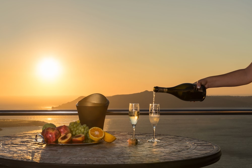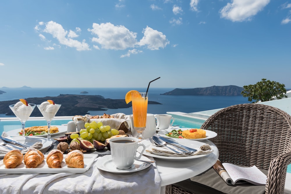 Wonderful experience. Beautiful quiet property, literally perfect location. 10 minute walk to beautiful Fira, and all the hustle and bustle, but hotel located in a quiet area, near the top of the hill overlooking not only Fira, but great Caldera view. Would DEFINITELY stay here again. A few things however, their restaurant is really not a restaurant, just a few table by the pool. If you want quiet, romantic and the view, this has it, but but more like eating on a patio. We got the junior suite, and I felt a waste of money. Same size as our friends regular room. Yes, we had a balcony, but is as not private. Also, the pool is great, but a bit deceiving that you can see the view from it - you cannot. Only if you look from the pool thru the doorway can you see. Small issues, and not enough to not give 5 stars, just some helpful tips.