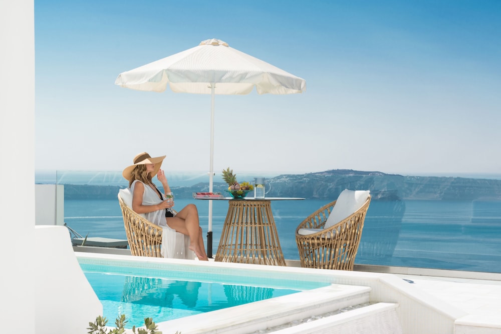 This hotel has an amazing view and the pool/patio area is wonderful. Very nice experience and highly recommended if you are looking for a place in Fira.