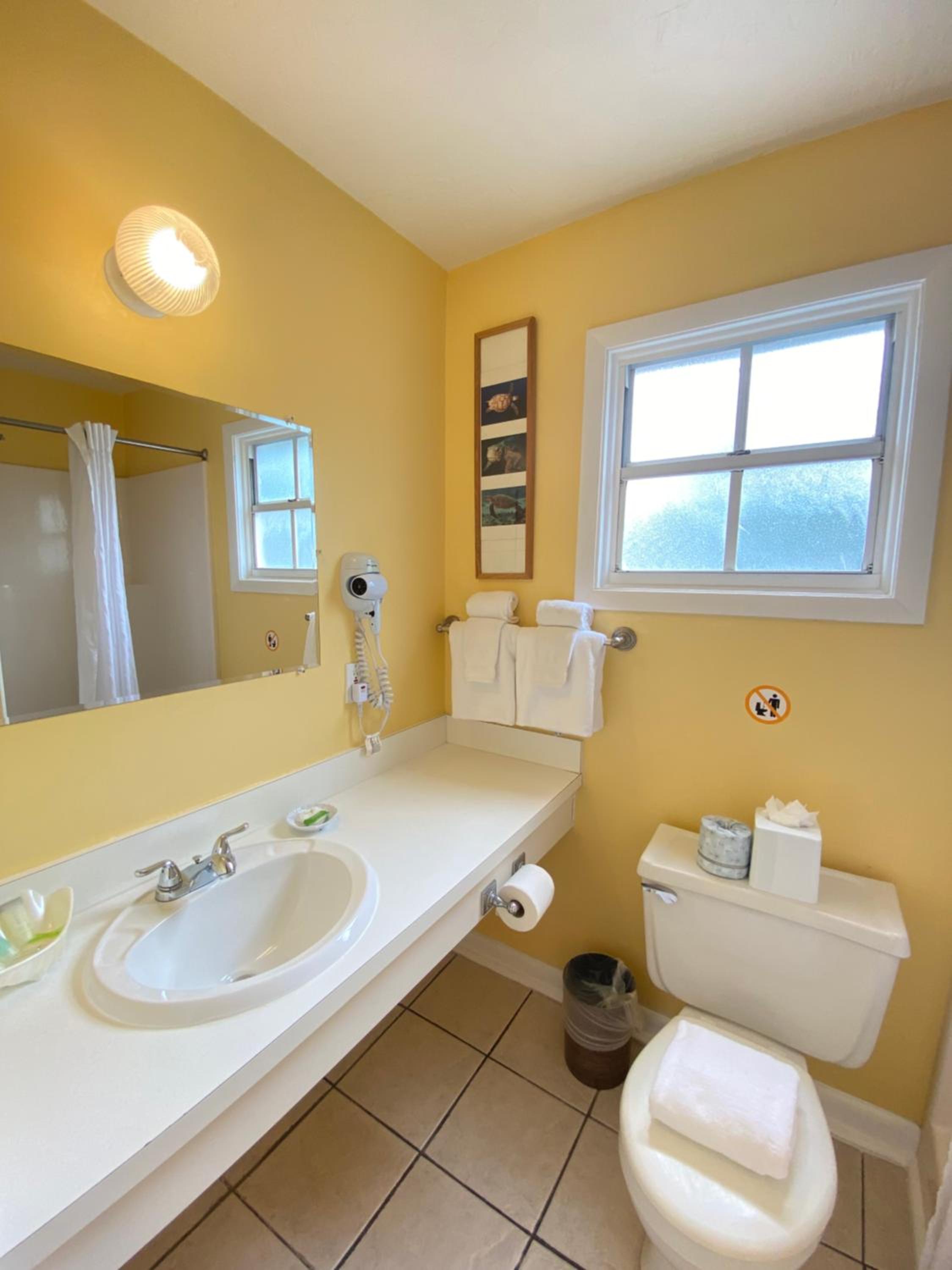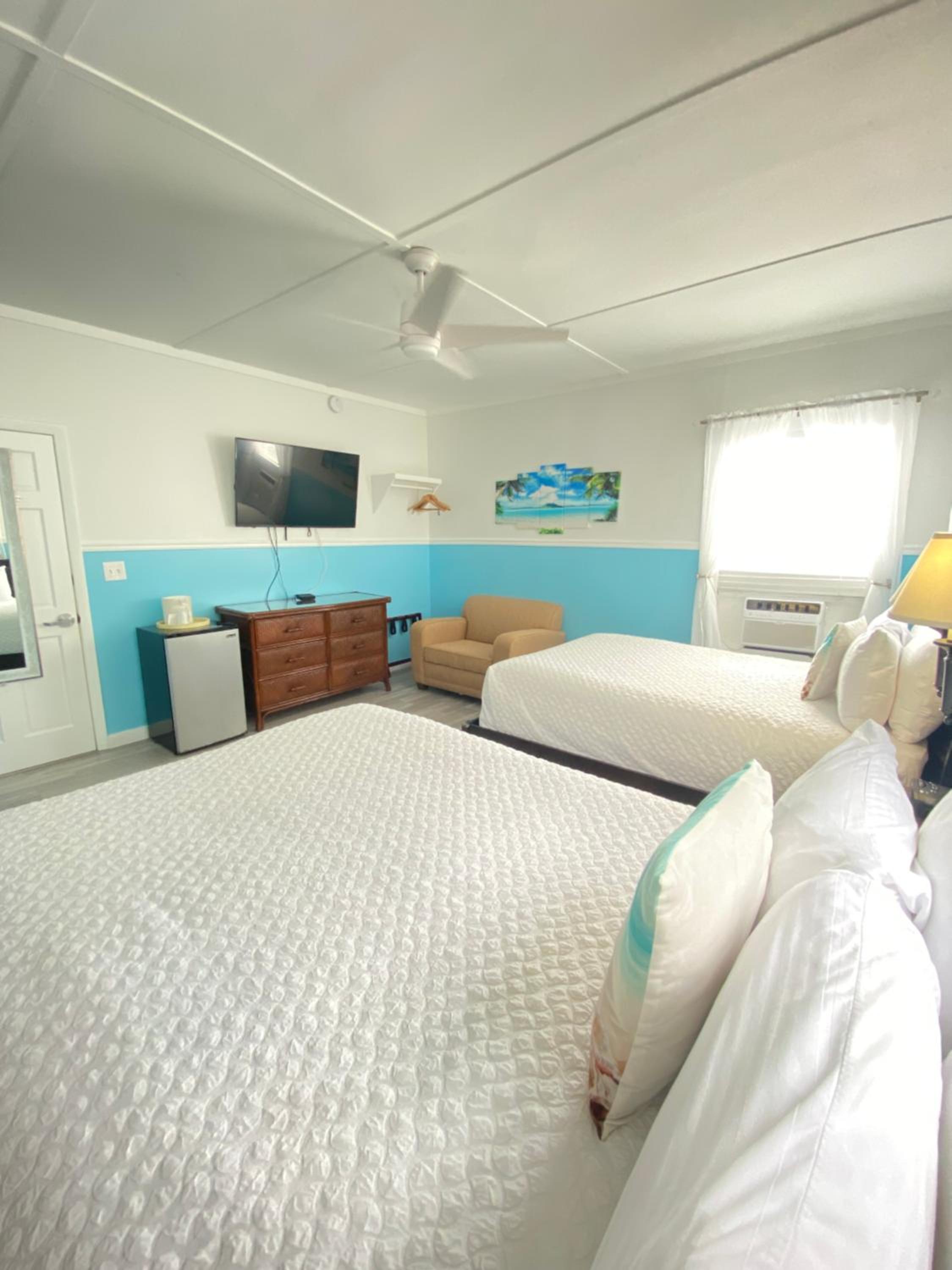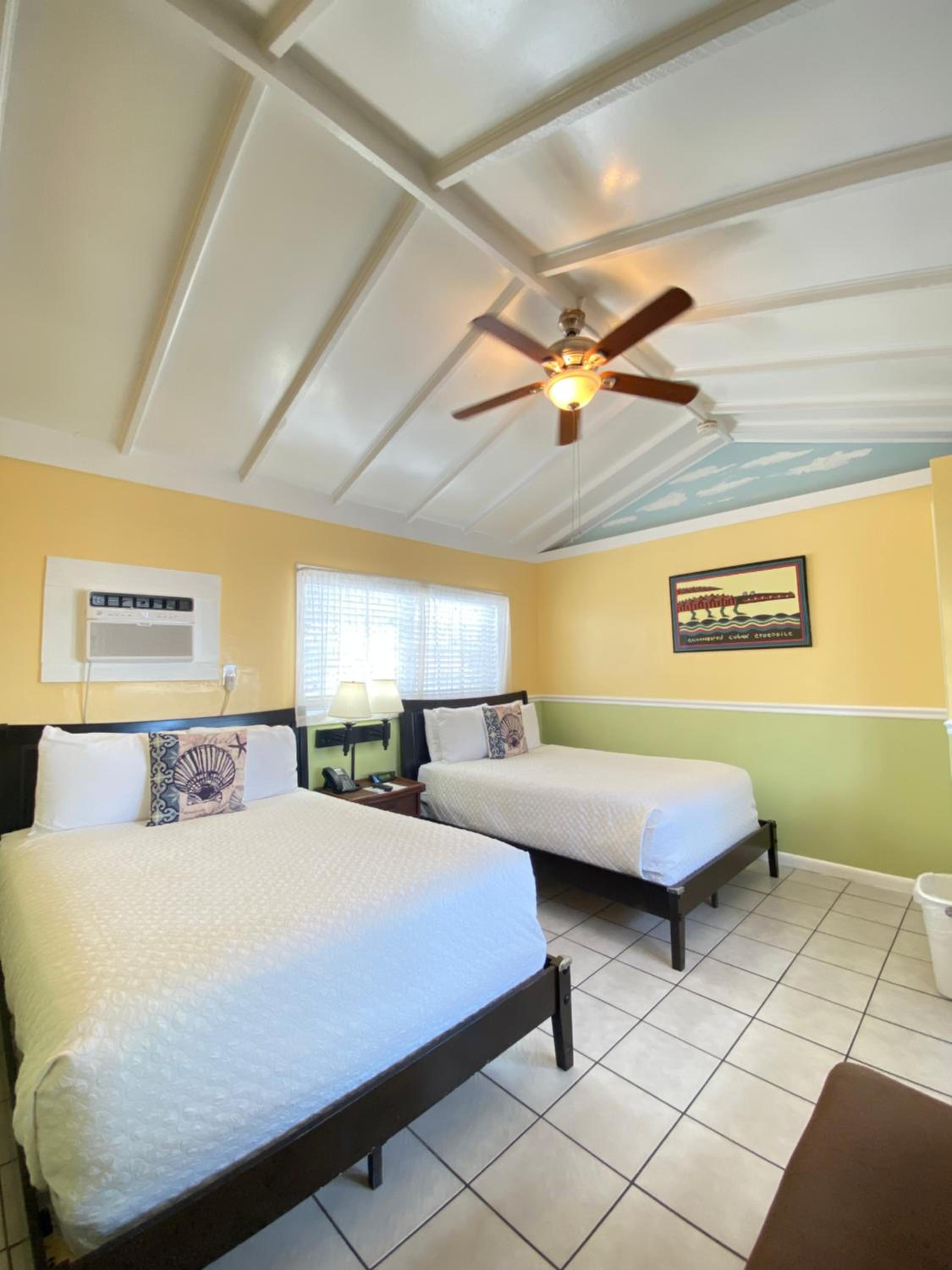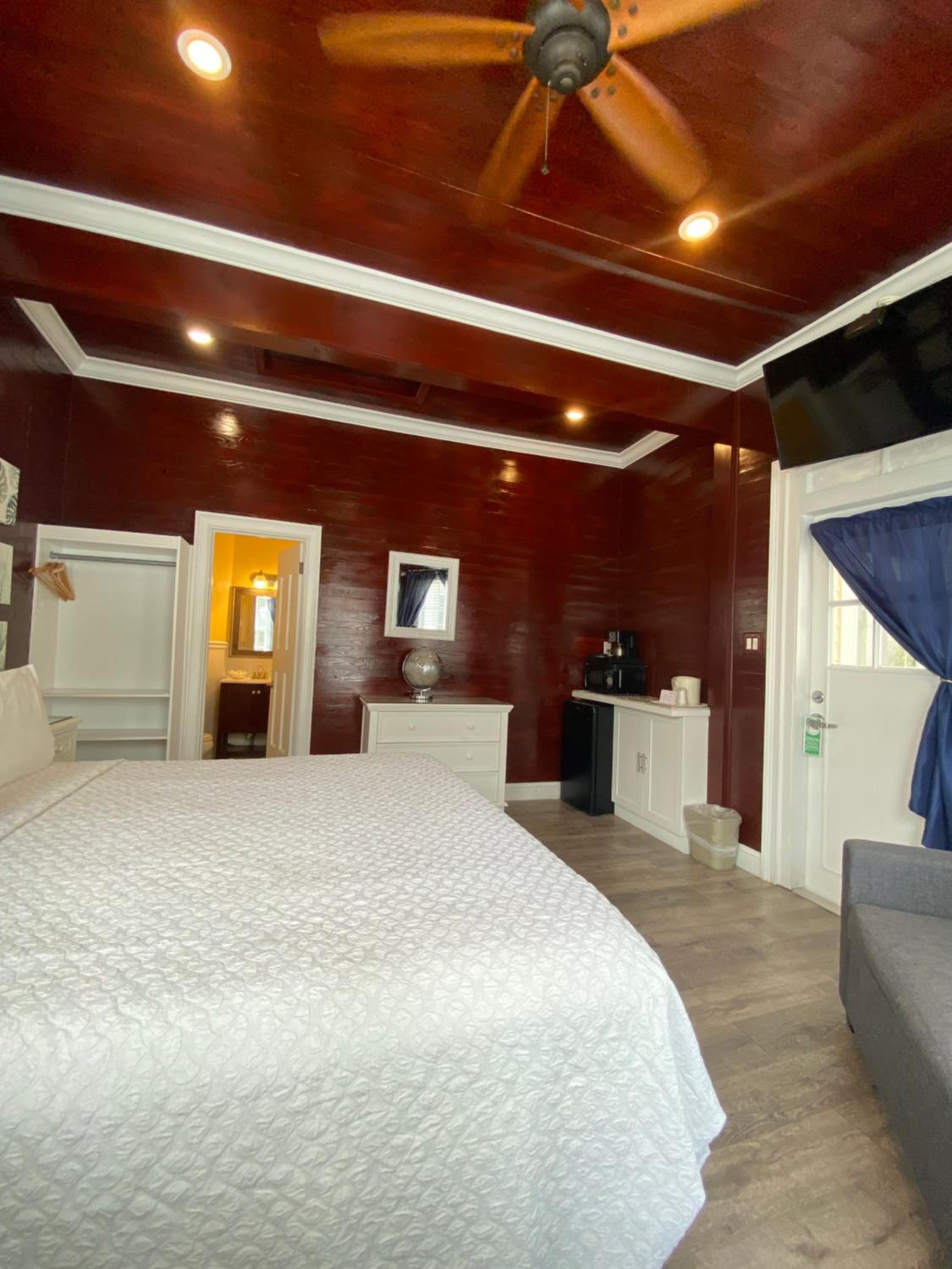 Comfortable Rooms with Amenities: Relax in rooms equipped with flat-screen TVs, cable channels, ceiling fans, and telephones. Some rooms even feature a seating area and kitchenette for added convenience.