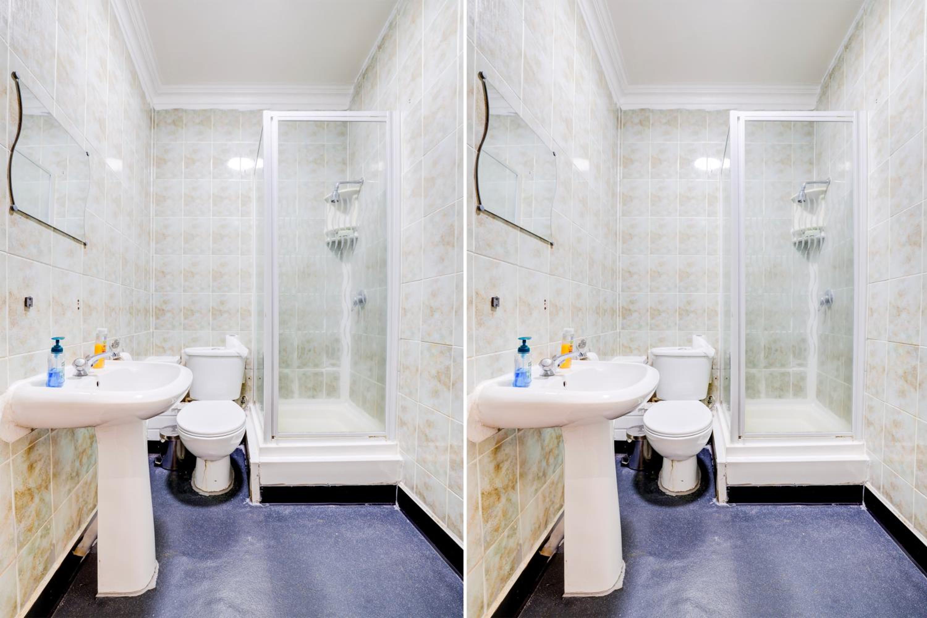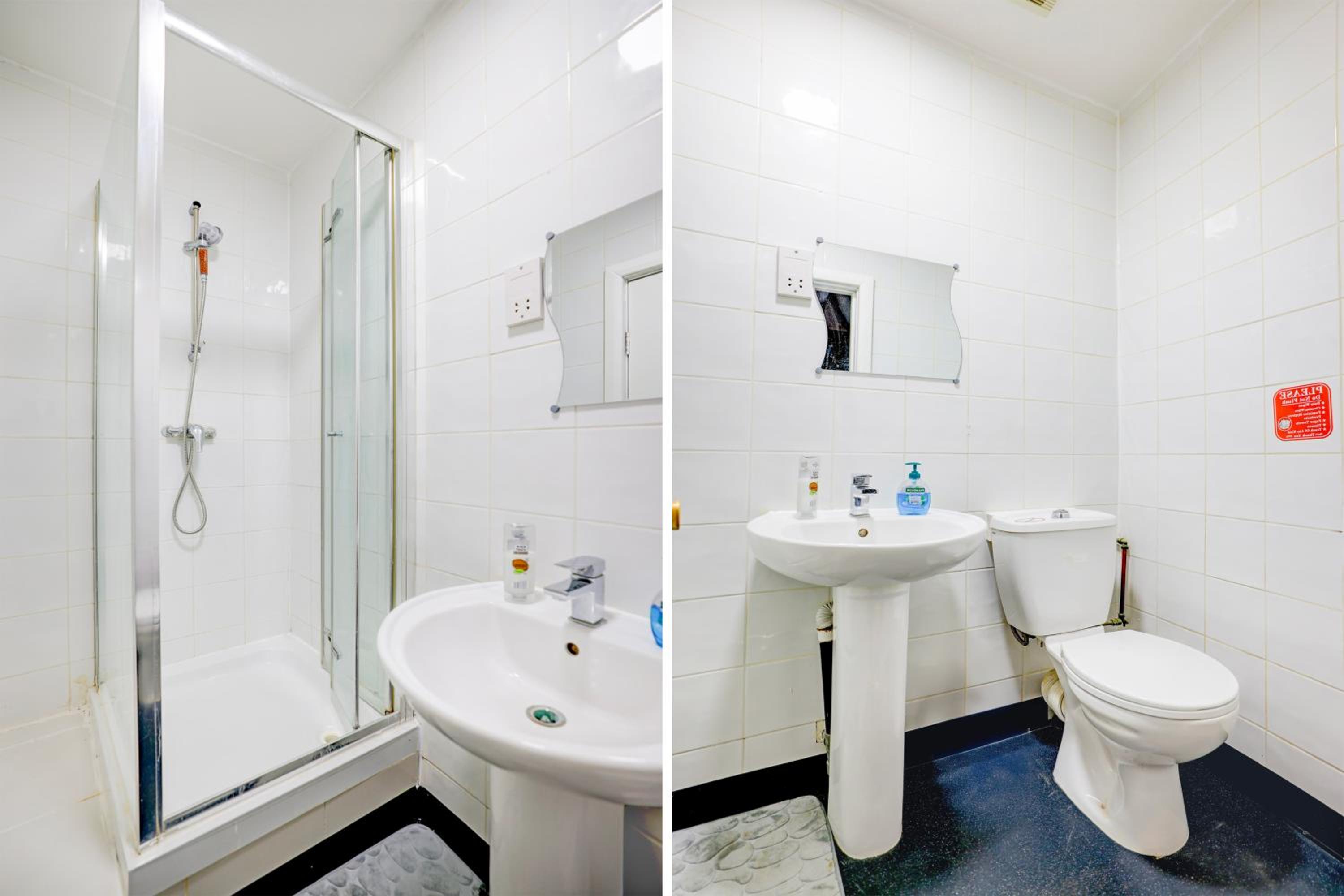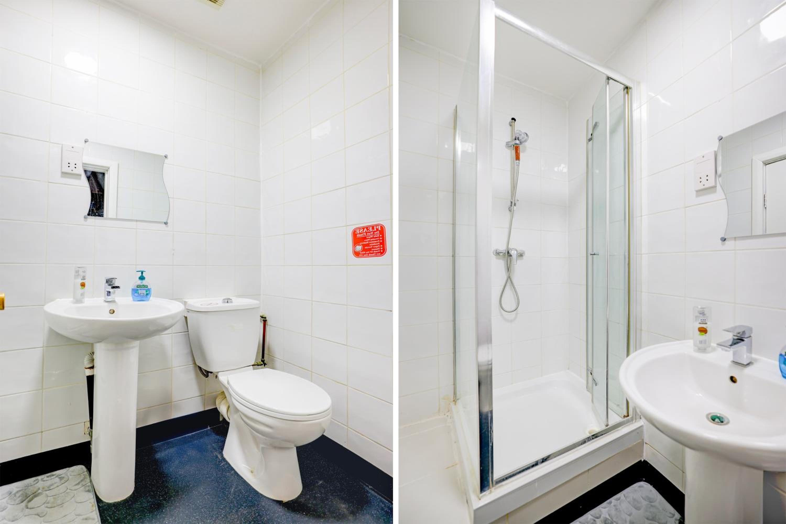 The shower was tiny and the rail mechanism was completely broken and looked like it had been for some time so showers had to be done by hand lest you risk it falling off and spraying everywhere. The bathroom itself has nowhere at all for you to put any shower products so just had to go on the floor of an already tiny shower. There was also no toilet brush and didnt look like it had been properly cleaned in some time.