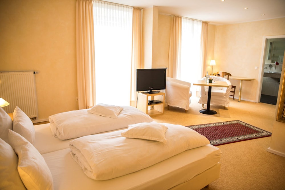 Lovely place, centrally located in the quaint German town. All the staff that I talked to had no problem speaking English, quite helpful. The breakfast room overlooks the looming medieval castle above the town. Charming! One note, the hotel does not have air conditioning, not unusual for this area, but if you ask at the front desk they will make an effort to find a fan for your room.