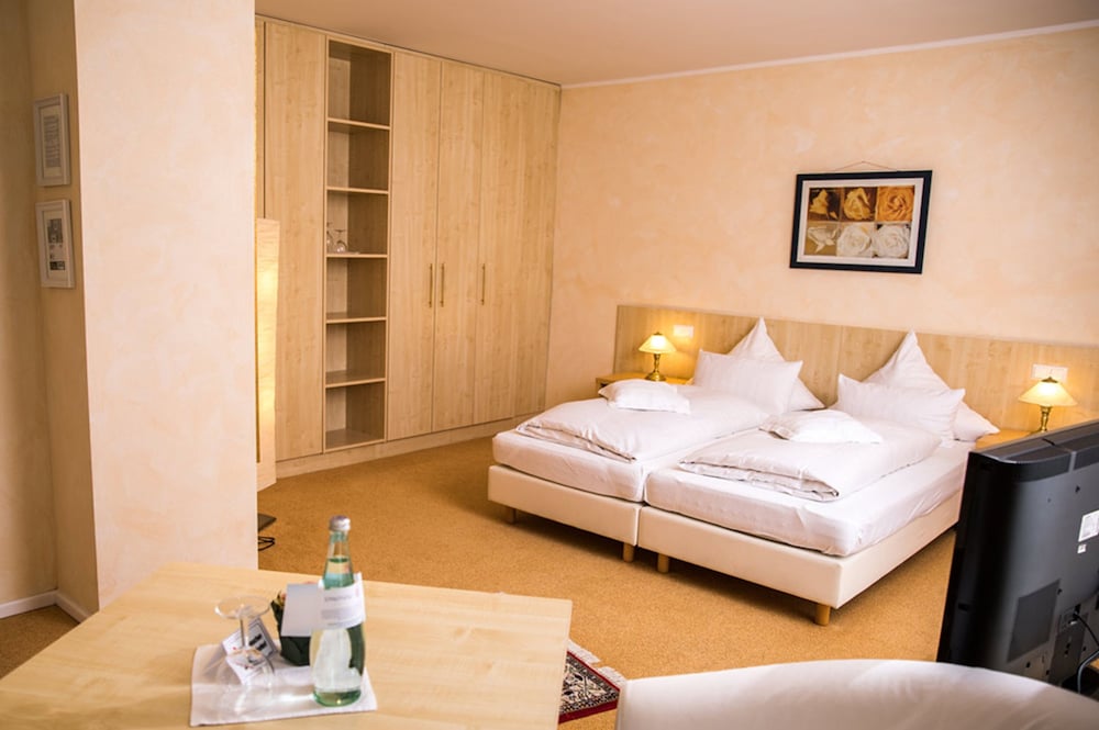 This hotel is located right in the heart of Landstuhl. It is close to many restaurants and bars. The room (actually it is a very nice studio apartment) that I stayed in was in an apartment type of building. It looked like a room that has just been renovated. It has a balcony and it is very clean. The owner Michael and his staff were very nice and friendly. Their buffet style breakfast was very good and some of their hot food was different from day to day while others (like cereal and yogurt) stayed the same, hence, you won't be eating the same type of hot food for breakfast everyday, and that is very nice! In my opinion, the wifi internet could use some improvement because its connection was dropped off from time to time, and its speed could be a little faster. Overall, I really enjoyed my stay and I will definitely stay there again the next time I visit the area.