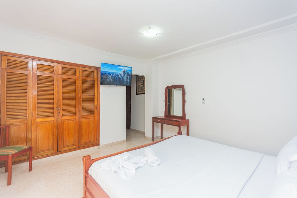Lo mejor de este hotel la ubicación, recomiendo no dejar objetos de valor ni tarjetas bancarias. WiFi no funciona, tampoco la tv, papelera del baño rota, poco papel higiénico, toallas no habían cuando llegamos (estaban en lavandería), las habitaciones huelen a humedad, sábanas manchadas, el desayuno repetitivo y un única opción (desayuno típico colombiano, arepa, huevo, pan, frijoles y salchichas) todos los días!