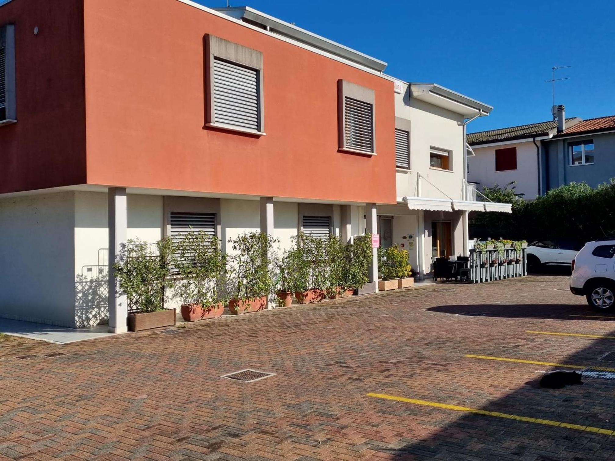 Parcheggio davanti all' hotel. Buona colazione.