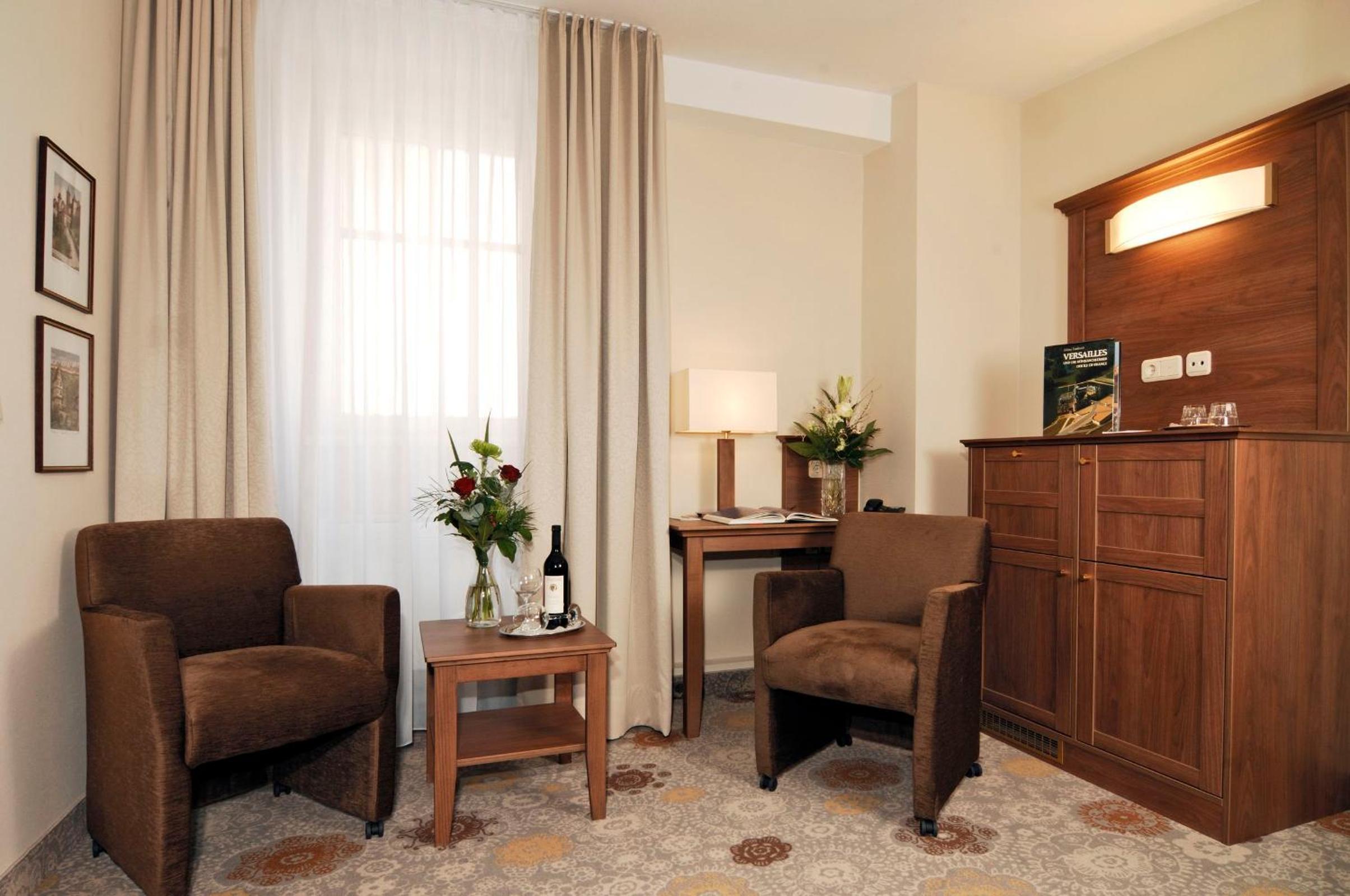 Luxurious Rooms and Dining: Experience comfort in rooms with modern amenities like flat-screen TVs and enjoy a delicious breakfast buffet in the elegant Bezoldstube.